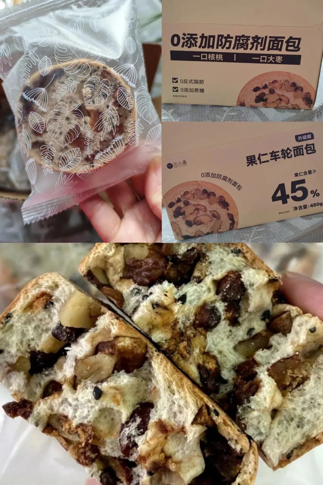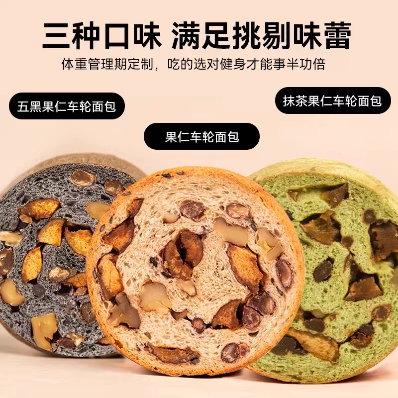 沈小善家的全麦果仁车轮面包,每箱8个装,打开包装就能看到满满的果仁~