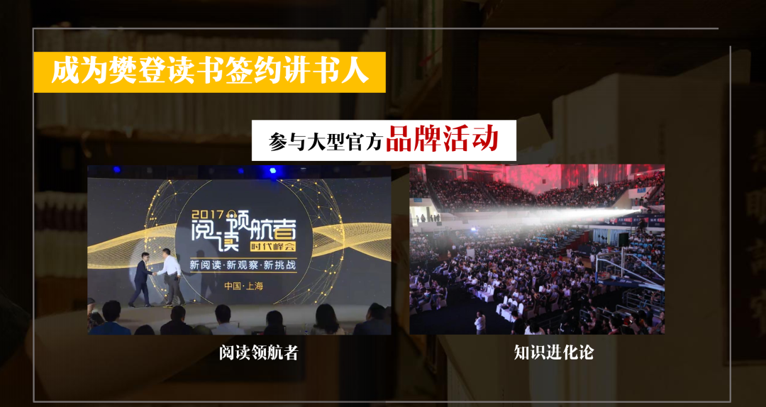 下面,读书君为你介绍几位往届参赛者的经历。他们通过讲书,改变了人生轨迹:2017年,樊登读书举办了第一季《我是讲书人》大赛,有几万人参与了海选,最终走进50强的,90%都是从来没有接触过讲书行业的人。50强选手文婧,原本是一家银行的普通职员,一次很偶然的机会参加了《我是讲书人》大赛。通过比赛她发现了讲书的市场价值,并在比赛中学会了一套成熟的讲书方法论。比赛结束后,文婧开设了一个短视频账号,为大家解读书籍和电影。现在,她已经是一个拥有400万+粉丝的网红。不仅个人品牌得到了大幅度提升,告别了996的加班生活,收入也比原来高了N倍。![]()