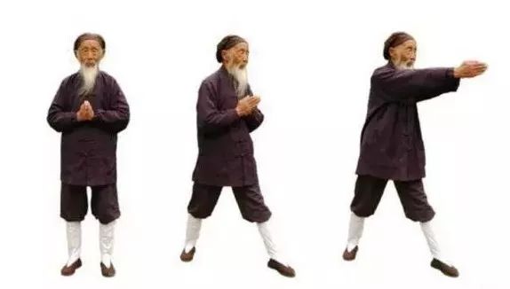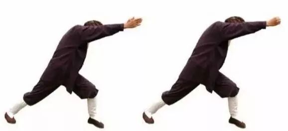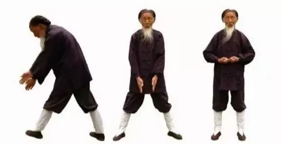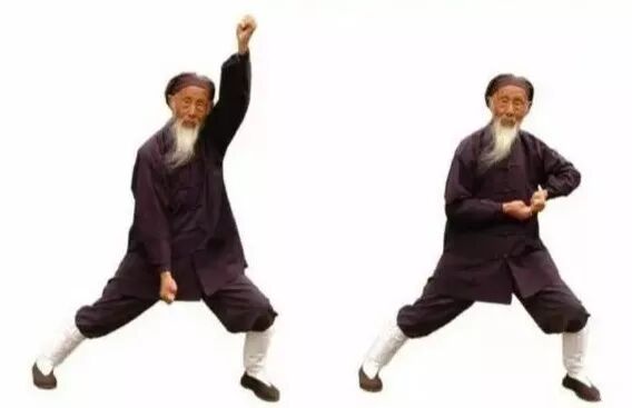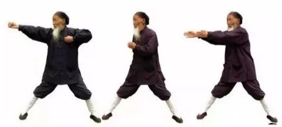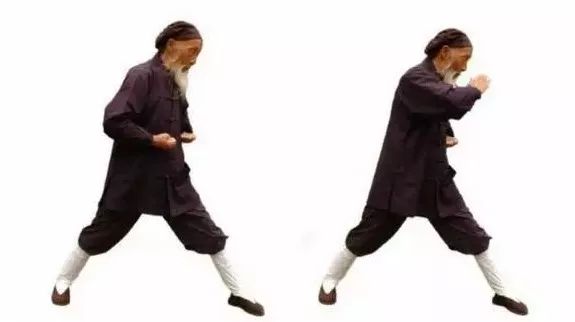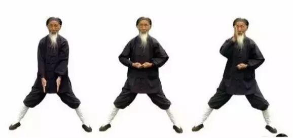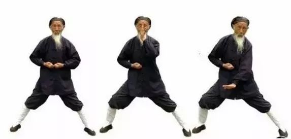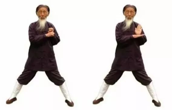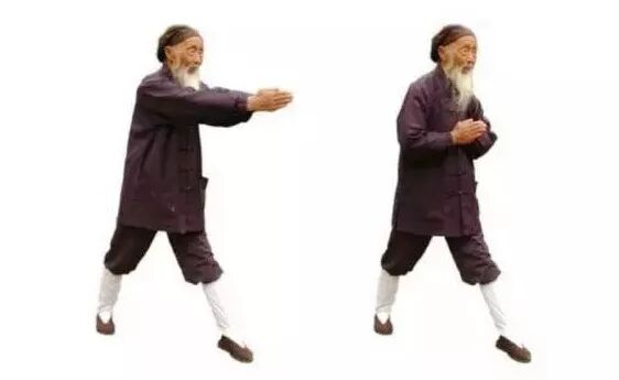 3.1 左弓举按:两掌变拳(前四指尽量内屈,拇指顶前四指指甲),两拳相对,掌心向上,置于脐上。3.4 左拳变立掌,掌心向前;右掌变阴平掌,掌心向下,掌背中部贴于左掌根。3.5 两掌同时动作:左掌经耳旁用力向上直举(如举一重物),变阳平掌,指尖向后;右掌从左腹外用力往下直按(如按一只老虎),指尖向左。同时左腿屈膝成左弓步,头身正直向前,稍停。3.6 两手小臂同时内旋,左掌变立掌,掌心向右,指尖向天;右掌变垂掌,掌心向左,指尖向地。3.7 握拳,左拳下拉(如拉一弹簧),右拳上提(如提一水桶),相对于左乳下;同时,左脚蹬直。3.9 右弓举按:双拳移至右腰外侧……动作与前同,但方向相反。完成上述左右手举按动作,合为一次。重复多次。最后左脚收回,与肩同宽。4、举轻若重,若有若无