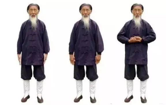 8.2 夹臂定神:双拳变掌,掌心向上,五指伸开,中指相对,左右手同时向左右横向拉开,至劳宫穴在身躯边止,稍停。8.3 然后左右手同时向脐部合拢,双手的五指相互交叉,拇指与拇指、小指尖与小指尖相按。8.4 仰掌,掌心略微向上,沿胸中线上提至人中穴(上唇坑中线上三分之一处),稍停。8.5 翻掌,掌心向下,又沿胸中线直下按至臂直,两臂紧贴身体,稍停。8.7 然后轻轻下顿,共五次。头两次提起较高,速度较慢,相隔较久;后三次提起较低,速度较快,相隔较短。其节奏是“1———2———3—4—5”。提顿五次为一节,至少做五节。8.8 最后两脚分开,与肩同宽,翻掌,掌心向上,提上至脐部。3、顿下来的时候是自然落体。