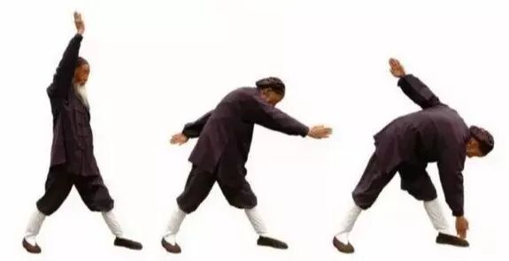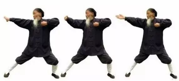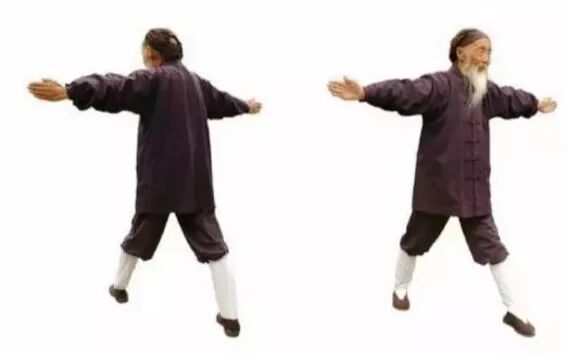 7.3 向右展翅:双拳变掌,掌心相对,两臂平行向左伸直,与肩同高。7.11 再弯腰,以左手指点右脚尖。如此上下连点三次。7.12 向左展翅:两手同时上提至右侧,掌心相对,继续向上、向左、向下划圈,弯腰,手指点脚尖,方法同前,唯方向相反。握拳归位。左右展翅合为一次,重复多次。7.13 结束本部功时,两手向左、向上、向右下旋转一圈至小腹。7.14 两掌变拳,拳心向上,相对置于脐部,收回左脚。3、转圈越来越快,凤凰三点头也越来越快。