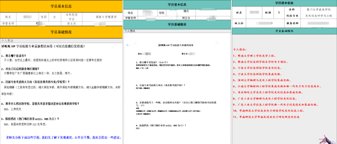 都说“选择决定命运”,那么决定你“考研命运”的这个选择,就一定要遵循你的意愿才行。研呱呱会从就业、兴趣、专业、学校档次、地区等多个维度进行意向调研,为之后的择校框定范围。③结合你的测试成绩和择校意向,生成一份详细的分析报告选择并不是简单的选了就行,而是要结合你的实际备考情况来调整。研呱呱的学员全年会进行很多次测试(周测+章节测+月测),通过测试,可以清楚地知道学员的学习效果怎么样,以此来匹配最合适的学校,一般会拟定3个档次的学校:研呱呱