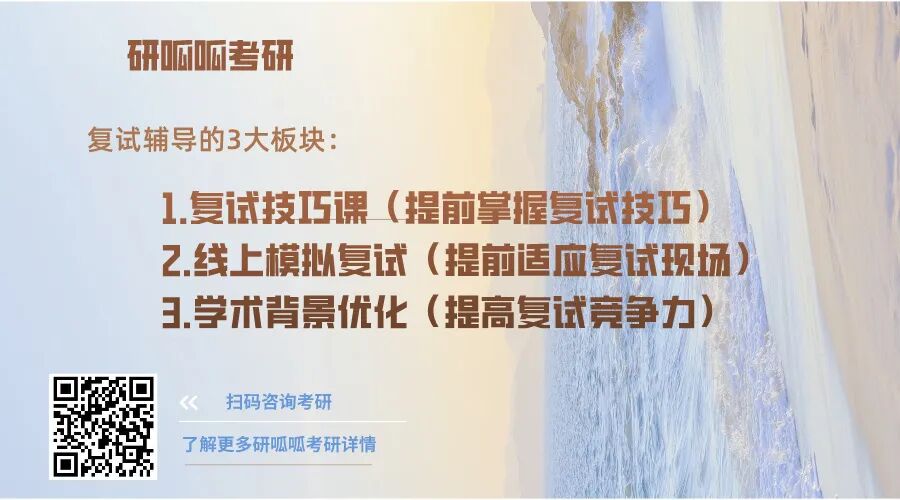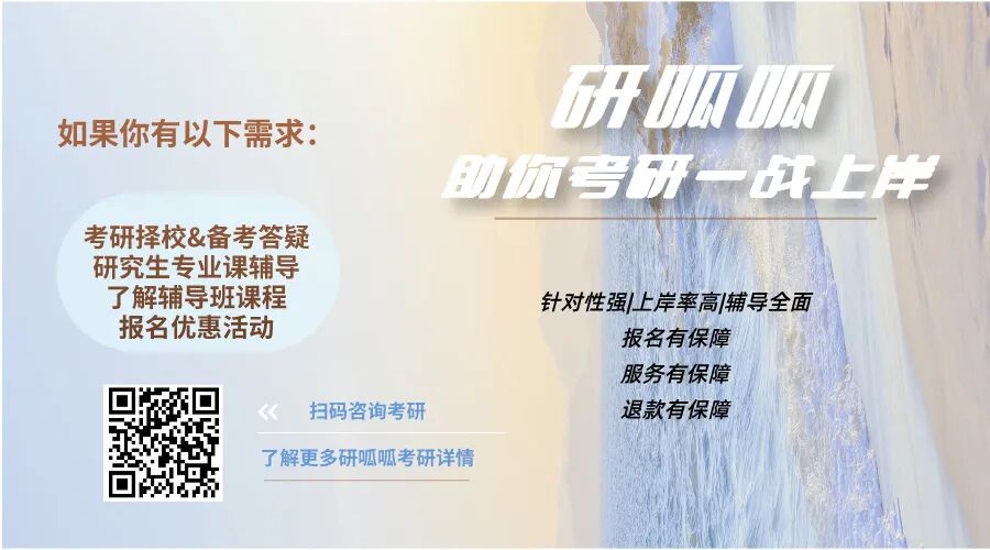 研呱呱自16年创立以来,已经服务了3W+的考研学子,打磨出一整套高效的辅导体系!如果你有择校&备考方面的问题需要答疑 or 想更详细地了解研呱呱课程,可以扫下方二维码,走官方通道咨询哦~