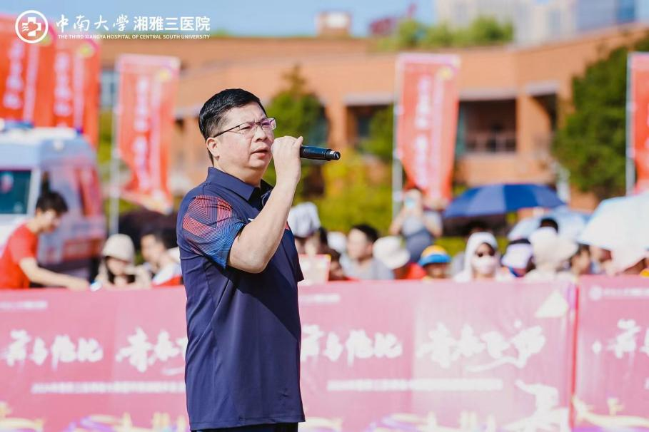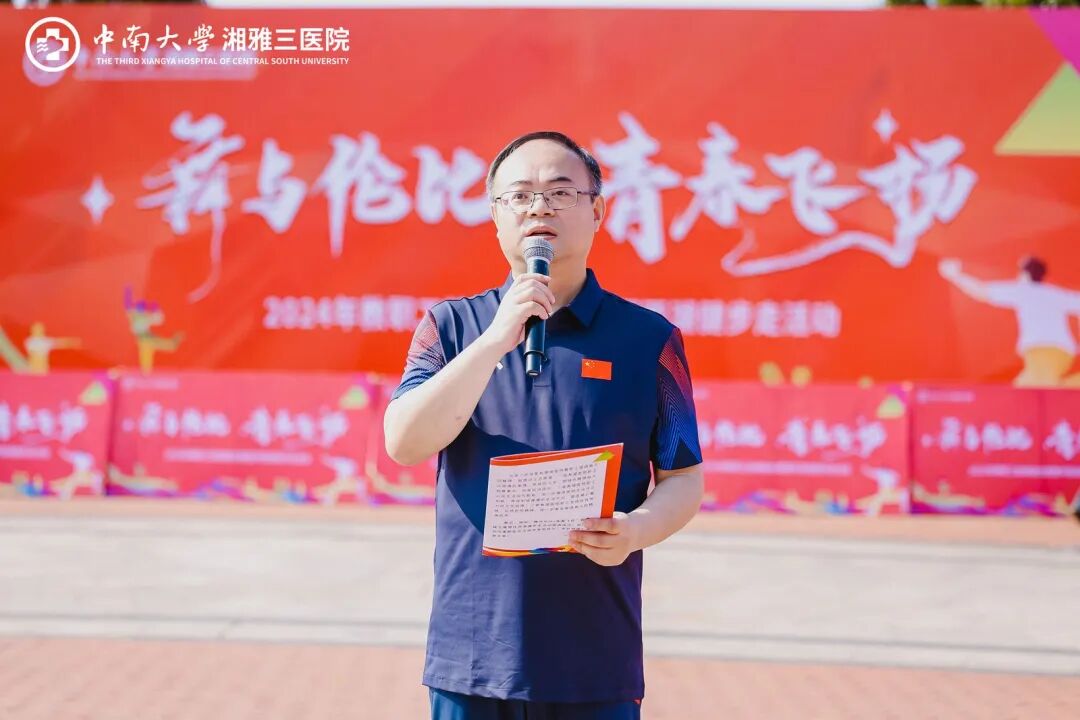 江泓致开幕词。他指出,在建国75周年和建院35周年之际,此次活动是展现医院职工良好精神风貌的重要契机,是积极响应“健康中国·全民健康”号召的一次生动实践。希望全体教职工以饱满的激情,共享运动的快乐,养成积极健康的生活方式,弘扬新湘雅精神,进一步激发接续奋斗的精神状态。