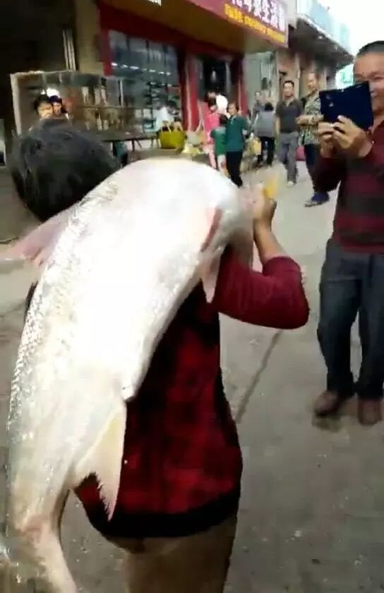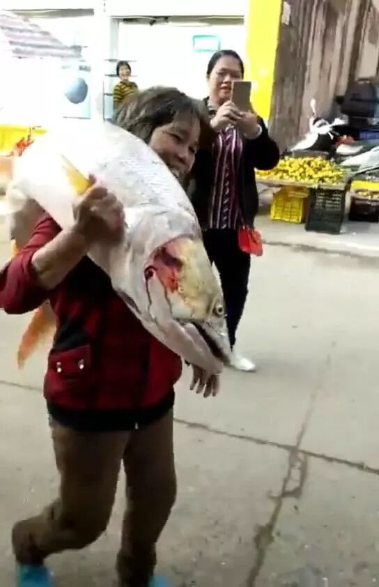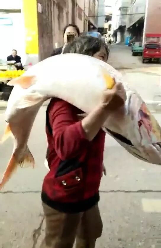 不过话说回来,大妈力气也是不小!扛着这条大鱼街头穿过,围观的人群发出一阵阵惊呼,估计很多人,从没见过这么大的鱼!