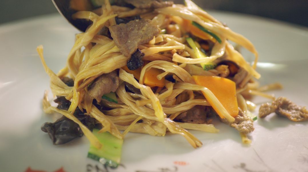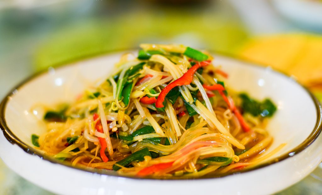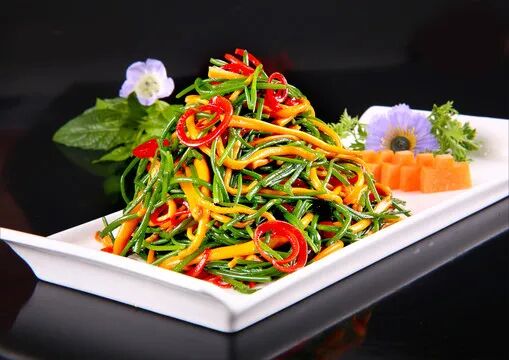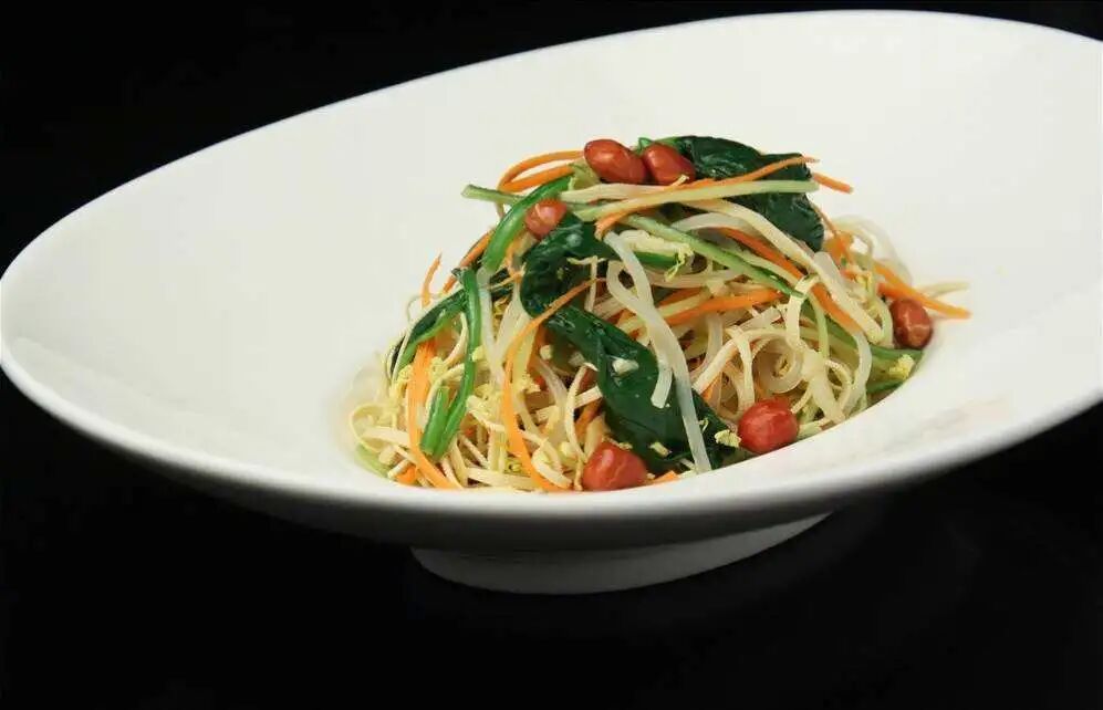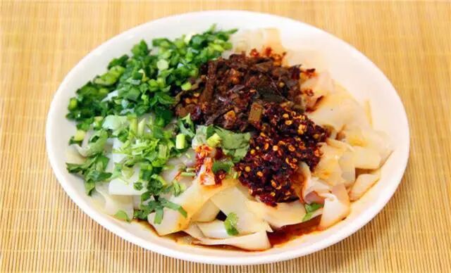 由豆芽、韭菜、菠菜、土豆、茼蒿、红椒、豆皮、粉条……等众多食材用特制的酱料凉拌一起,虽然算不上什么名菜,但却是一道非常开胃的小菜,五颜六色,酸爽可口。首先将土豆切丝,用凉水多透几遍,浸泡十分钟,这样口感会更脆一些。用开水将豆芽、土豆丝、韭菜、菠菜以及其他绿色青菜煮熟捞出,再用凉水过一遍。准备蒜末、辣椒丝、小米辣、花生等辅料放在菜上,然后热锅凉油,放入花椒,等到出味以后将花椒捞出,把油浇到菜上,根据个人口味放入盐,味极鲜,鸡精,醋,拌匀即可。以上素菜仅仅都是小编的推荐,宁夏不止这几道素食,还有很多美味素食等着我们一起去发现。如此清新爽口的素菜有没有很心动啊?冬天囤的膘该收啦!肉菜的尽头是素菜,一起把膘“甩起来”!