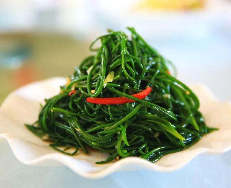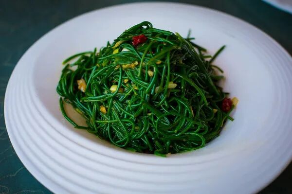 正是由于它常年生长于沙漠,所以才有了沙葱这个名字。沙葱的生命力非常顽强,它能够耐高寒、耐干旱。沙葱还可以做多种佳肴,西北人经常将采摘来的新鲜沙葱和刚宰过的大尾羊肉所做的大包子招待客人。亦或者将沙葱花用盐腌上或晾晒干,做汤煮肉时往锅里放上一把葱花,那汤那肉就四溢飘香。蒜蓉菜心