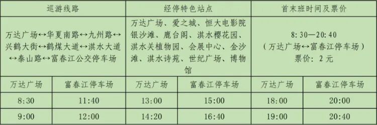 途经景点:银沙滩、鹿台阁、淇水樱花园-淇水关植物园-会展中心-金沙滩-淇水诗苑-世纪广场-博物馆-桃园公园-体育公园。