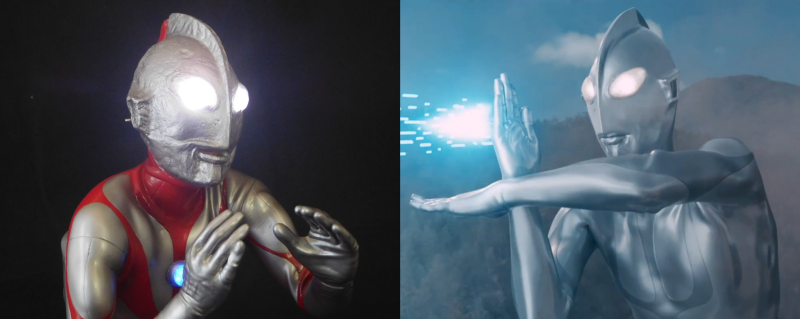 成田亨设计的奥特曼(左)
