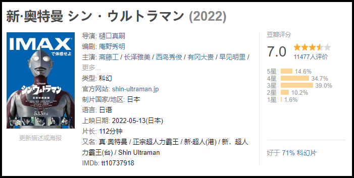 豆瓣7.0的大众口碑来看,《新·奥特曼》恐怕有点玩砸了。