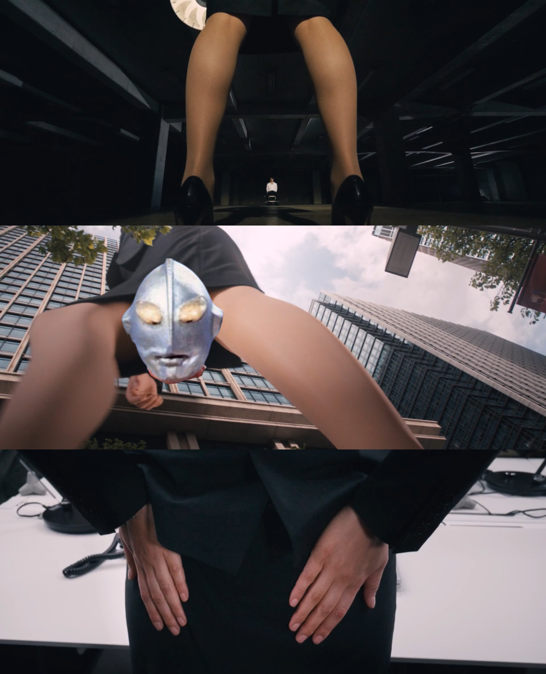 要不然是广角镜头仰拍,把人类拍得像奥特曼巨大;