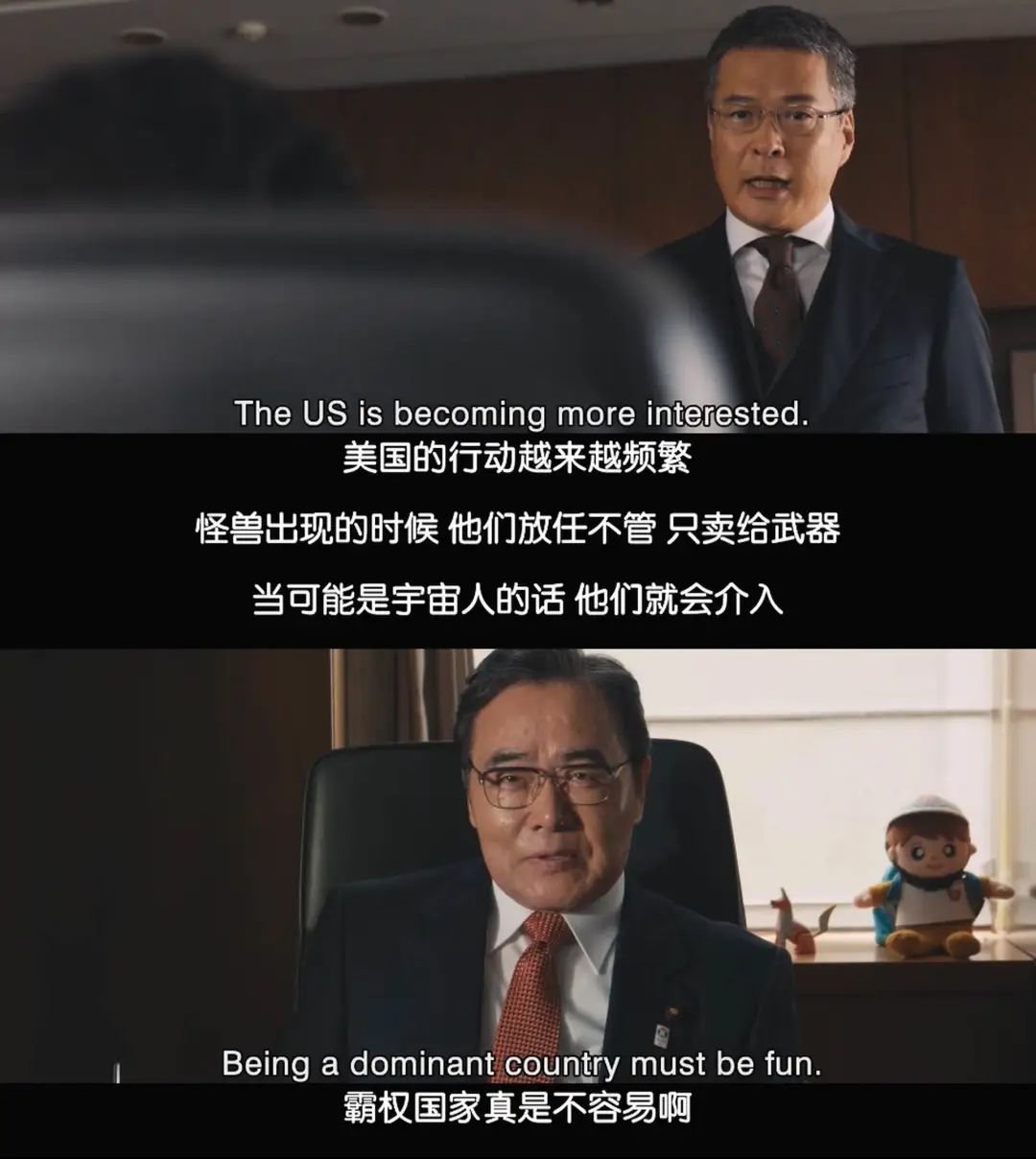 明面上,电影用台词,揶揄官僚系统,讽刺美国霸权。