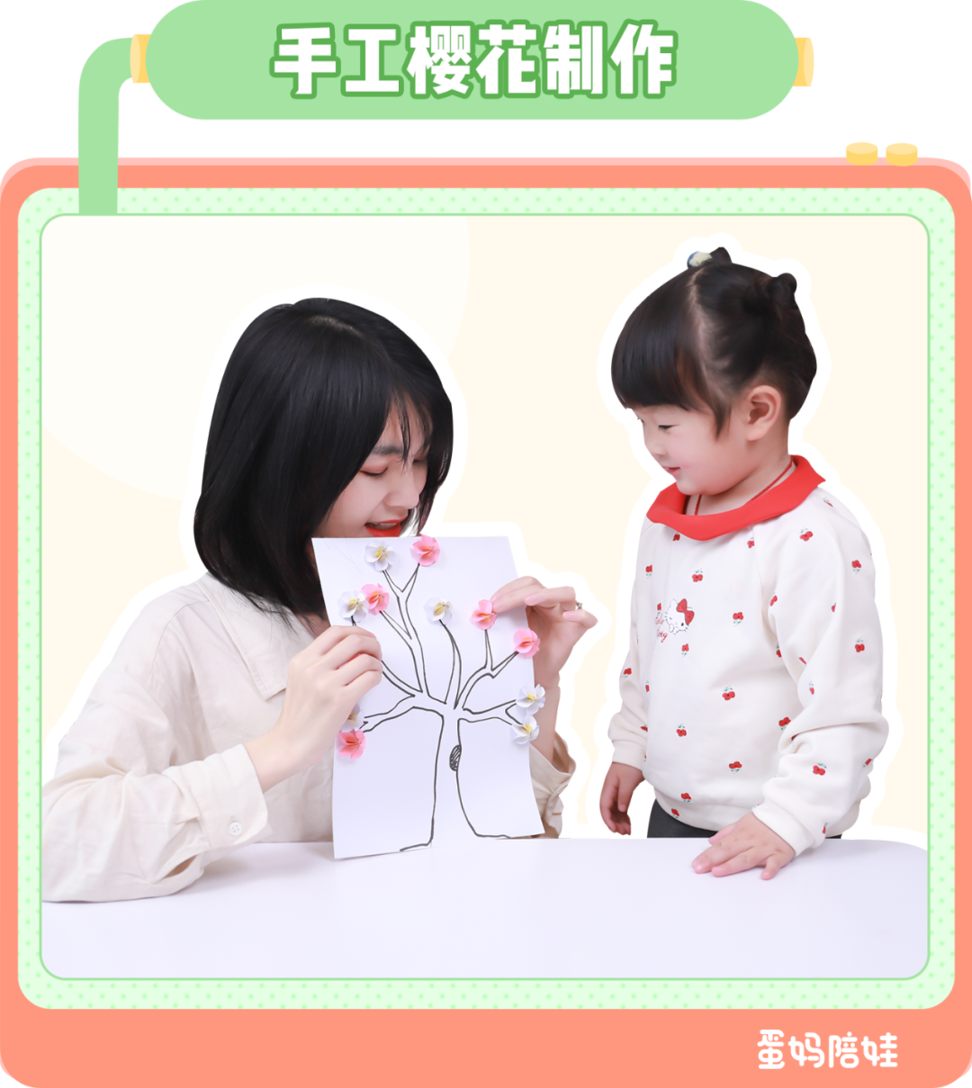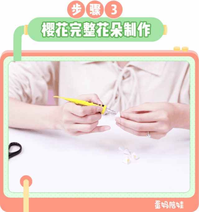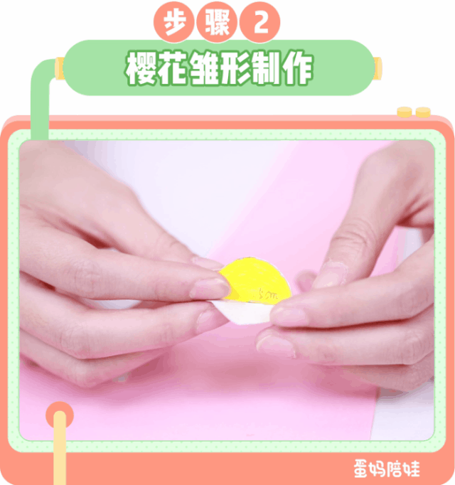 走着走着,蛋姐指着一棵樱花树问我。 蛋姐:“妈妈,这个粉色的花是什么呀?好漂亮。” 我:“那是樱花,还有白色的呢。” 蛋姐:“妈妈,我想要。” 老陶在树下捡了几朵自然飘落的樱花给了蛋姐。 蛋姐可高兴坏了~但是,我又开始了我的碎碎念。 “妈妈要表扬老陶了哦,蛋姐也要记得不乱折树枝哦。” 蛋姐一路都特别“格外照顾”她的樱花,可惜回到家还是凋了。 蛋姐:“妈妈,为什么花儿会凋谢呢?” 我:“因为它离开了大树的滋养,营养成分跟不上了。” “花儿需要足够的水分、阳光,花儿的凋谢是一个自然过程。” 蛋姐应该是似懂非懂吧,在那嘟着小嘴不开心。 我告诉蛋姐我可以给她做假的樱花,可以一直不凋谢。 来看看制作樱花需要什么道具吧~ 在卡纸上画5个半径为1.5cm的圆形,裁剪下来即可。 一朵完整的樱花要五片花瓣哦~ 用黄色的水彩笔给圆形的一半上色。(这部分充当的是樱花的花蕊) 其实很简单,就对折再对折,然后展开,再折回去哈哈哈 弄完是扇子的形状就对了。 在拿牙签粘樱花底部的时候,我顺便吐槽这个手工胶简直像鼻涕一样。 蛋姐认真的的跟我说,妈妈,鼻涕可没有这么干净 把折好的五朵花瓣,粘贴在一起就可以得到一朵完整的樱花了。 花蕊太长要减掉一些哦。 为了让樱花更有灵魂,我还拿手在花瓣的上方捏了褶皱。 凭借着我脑子里对树干的想象,拿马克笔勾勒出了树干的形状。 在树杈的顶部,贴上美丽的樱花,这样樱花树就制作完了。 现在这幅“巨作”贴在了蛋姐的床头。 我告诉蛋姐,樱花最美的地方是武汉,以后有机会一定带她去武汉看最美的樱花。 樱花游戏操作简单,道具也在日常生活中随处可见。 在这夏天的初端,让我们抓住春天的尾巴,带宝贝在感受一下春天的气息吧。![]()
