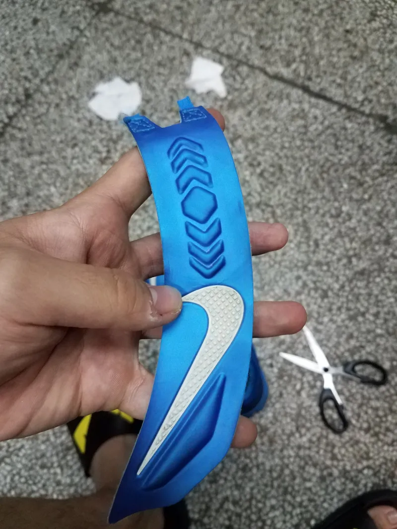 鞋底的配置是前掌扇形zoom后掌麻将zoom,当时看来还算配置中等,因为印象中那个时候同期的鞋全掌zoom或者max气垫什么的多一些。也有一些用露娜的。现在来看这样配置的球鞋已经很少能六七百买到了。甚至只有AJ34?35?才舍得用前后zoom了。中间的抗扭转用的不是碳板,就是tpu塑料。这双鞋的鞋底也有一个nike的logo,塑料的也能起到一定的抗扭作用。而且抗扭转这个东西,真的是最近两年大家才开始热烈讨论的,以前买鞋也没想着去掰球鞋,因为足够让人放心。