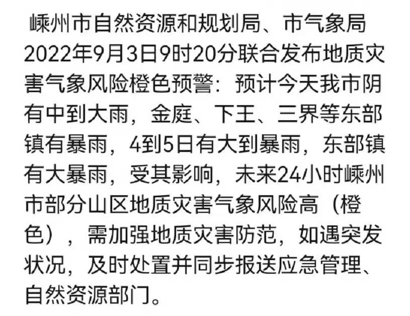 9月2日18时,浙江省水利厅已将水旱灾害防御(防台)应急响应提升至Ⅲ级,要求各地水利部门进一步做好监测预警、水工程调度和防汛抢险技术支撑等水旱灾害防御工作。 那么 “轩岚诺”的情况究竟如何? 和小编一起来看 目前预报来看 台风登陆可能性不大 4日夜间到5日上午将在 浙江近海海面转向东北方向移动 但由于其体积庞大 即使是从近海“路过” 浙江的风雨影响也会很强 目前台风中心外围已经开始影响 浙江沿海出现 7~8级阵风、局地9~10级 明后天,降雨将更加明显 明天(4日),浙江全省阴有阵雨 东部地区中到大雨 宁波、舟山、嘉兴、 绍兴、台州及金华东部等地 台风实时路径追踪部分暴雨,局部大暴雨 后天(5日) 浙江东部地区阴有阵雨 部分中到大雨,局部暴雨 夜里起雨渐止转阴到多云 其他地区阴部分有阵雨 下午起雨止转阴到多云 联系电话 责编:黄伯正 审核:马蔡荣![]()