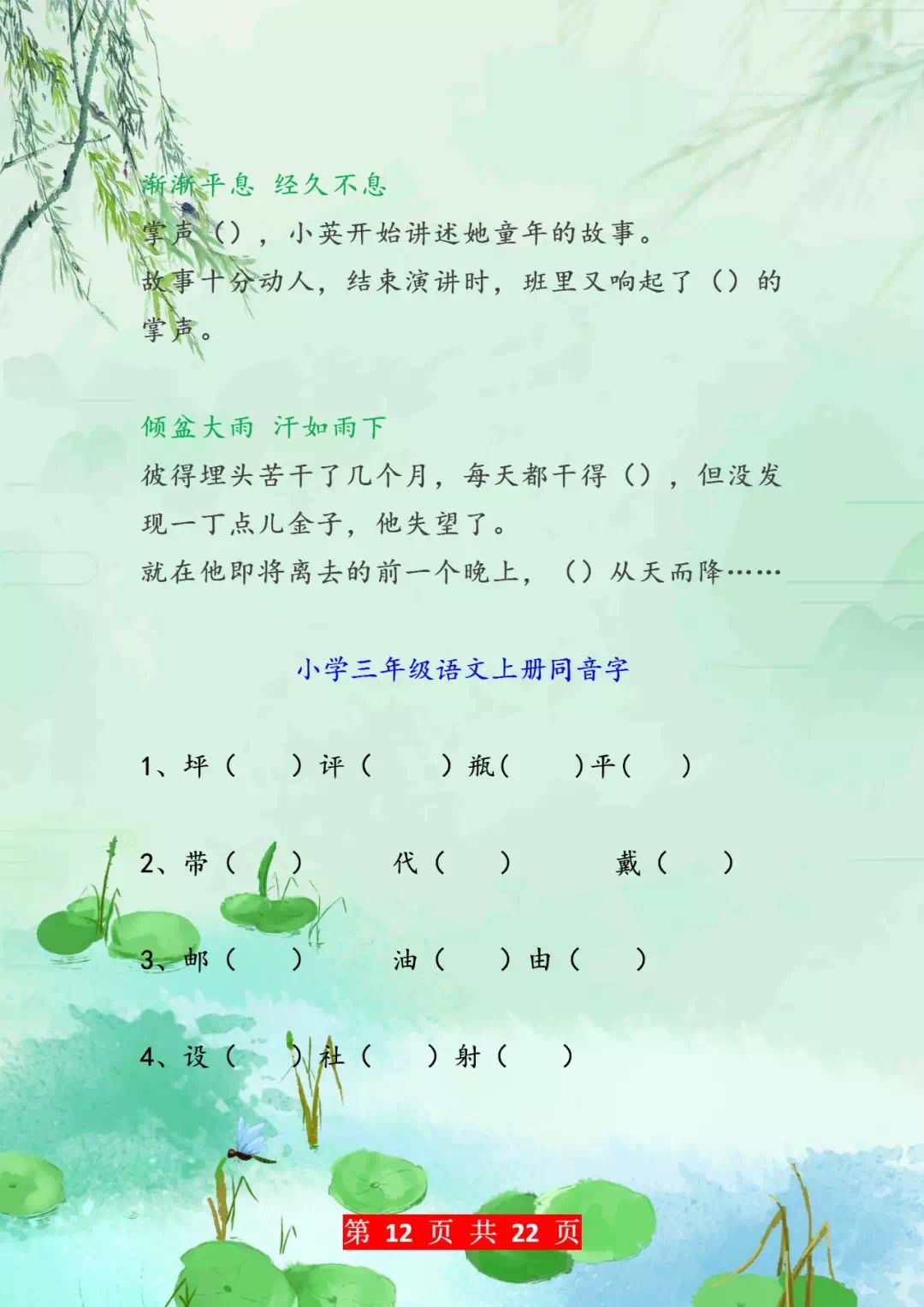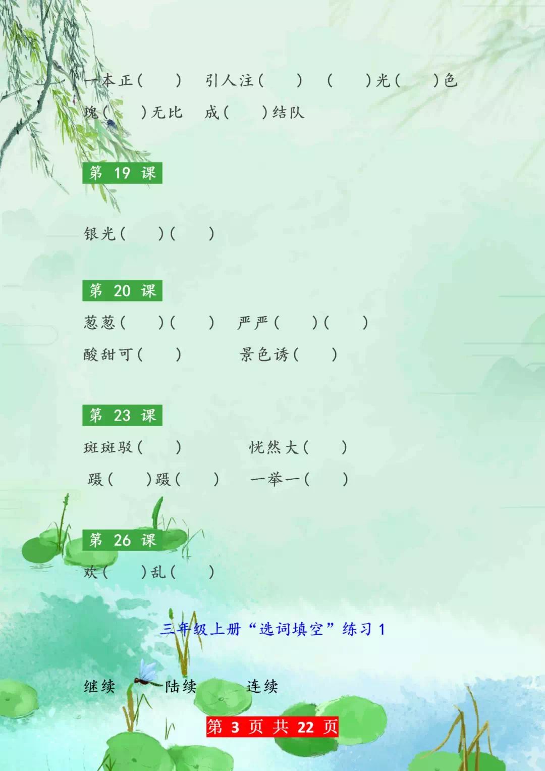 今天老师整理了小学三年级语文成语填空和选词填空,还有部分同音字练习,建议家长们可以为孩子收藏一份,我相信这对于提高孩子的综合能力会有很大的帮助!