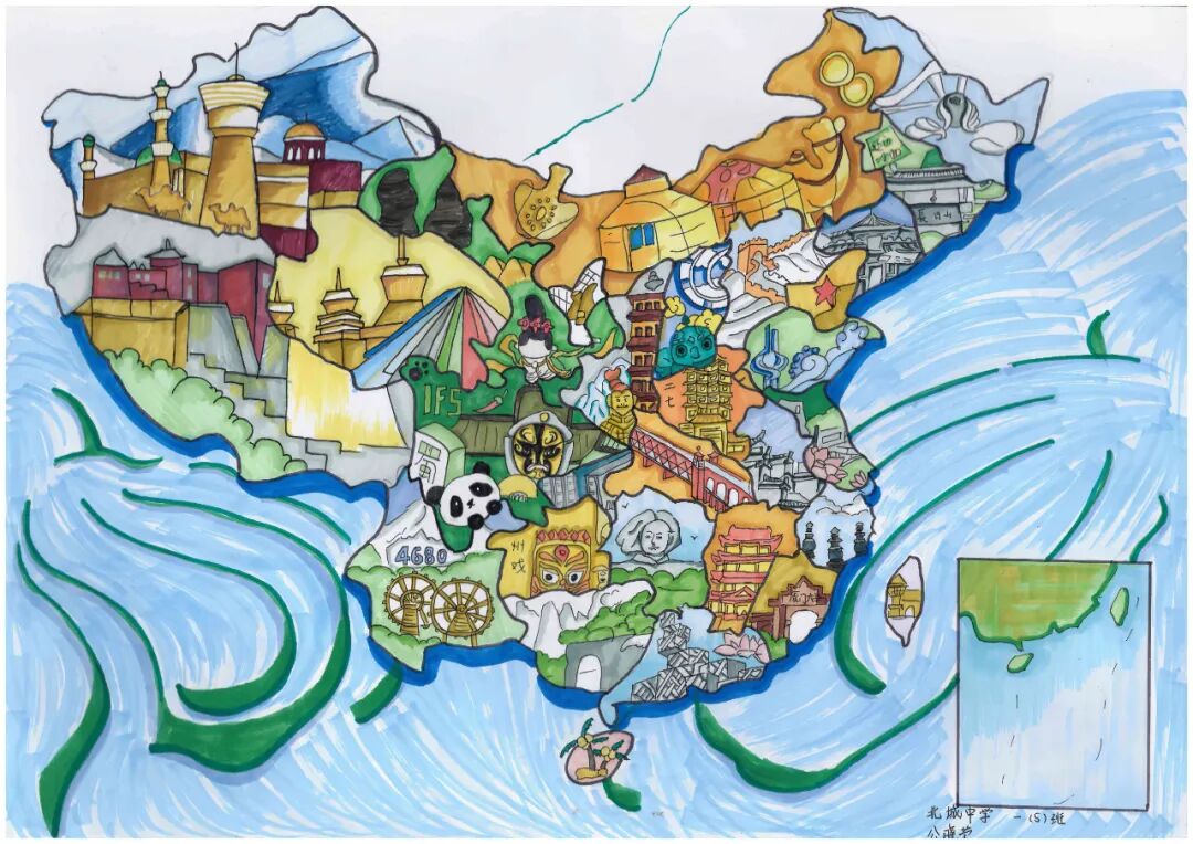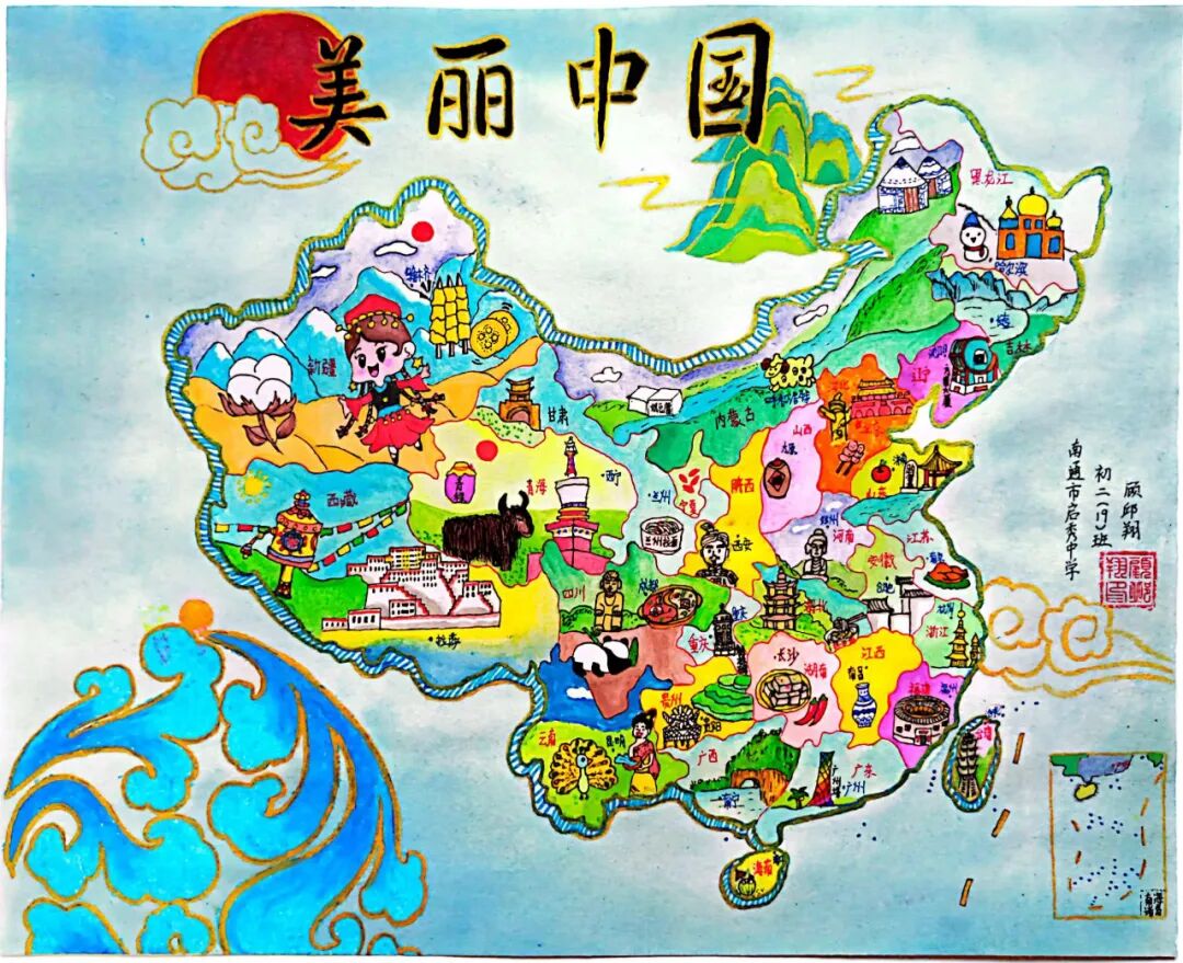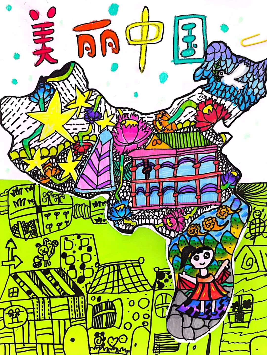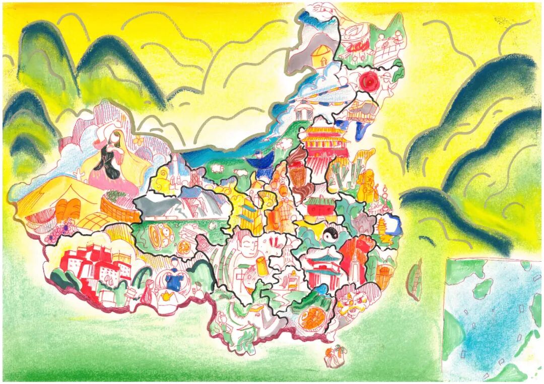 这些作品以地图为载体,通过绘画的形式表达了青少年朋友们对美丽中国、美好家乡、生态文明的赞美和热爱,以及对人与自然和谐共生的憧憬与向往。