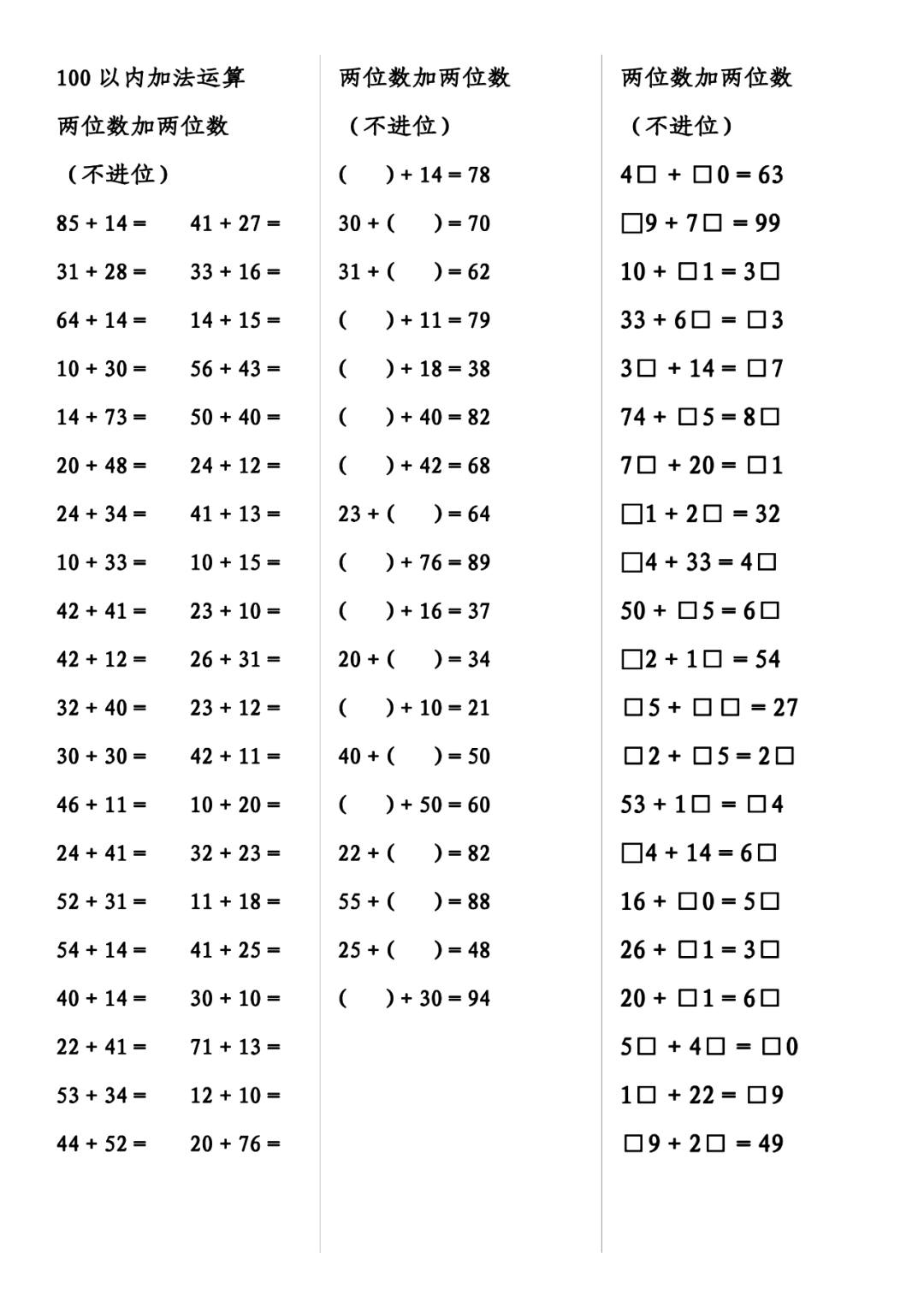 接下来,我们就一起来看看这份100以内的加减法训练: