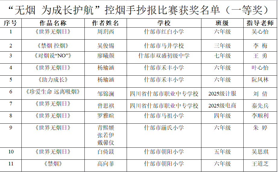 为深入实施健康什邡控烟行动,助力市文明城市、国家卫生市创建工作,倡导绿色环保,文明健康生活方式,展现新时代青少年健康形象和良好风貌。5月24日,市卫健局联合市教体局在全市中小学校开展了控烟绘画、手抄报作品征集活动。