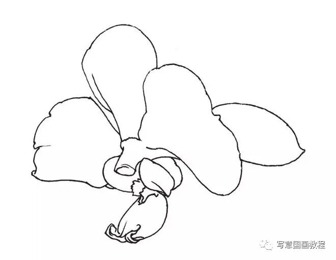 步骤一:详细观察蝴蝶兰花朵的形态,仔细描绘整个花头,特别要留意花瓣叠压的关系,以及花蕊和蕊柱的结构。