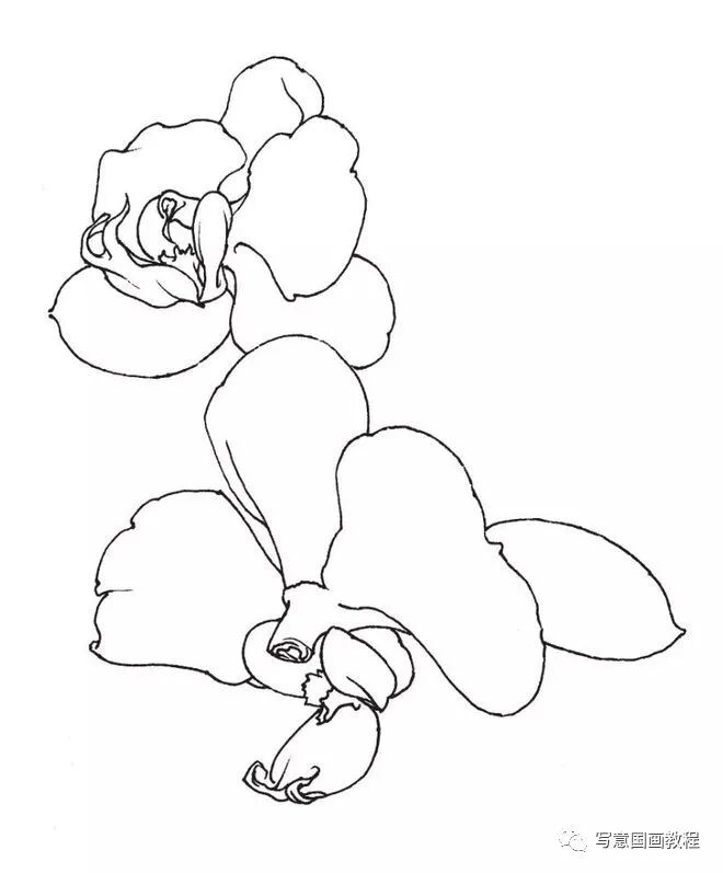 步骤二:在熟悉了第一个花头的绘制特点后,顺势描绘出后方新开的花头。在表现时,需留意前后两个花头的大小和主次关系,使其呈现出和谐的视觉比例和空间分布。