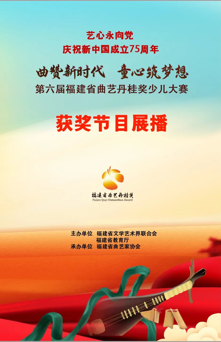 由福建省文学艺术界联合会、福建省教育厅联合主办,福建省曲艺家协会承办的庆祝新中国成立75周年 “ 曲赞新时代 童心筑梦想 ” 第六届福建省曲艺丹桂奖少儿大赛于2024年5月中旬圆满结束。
