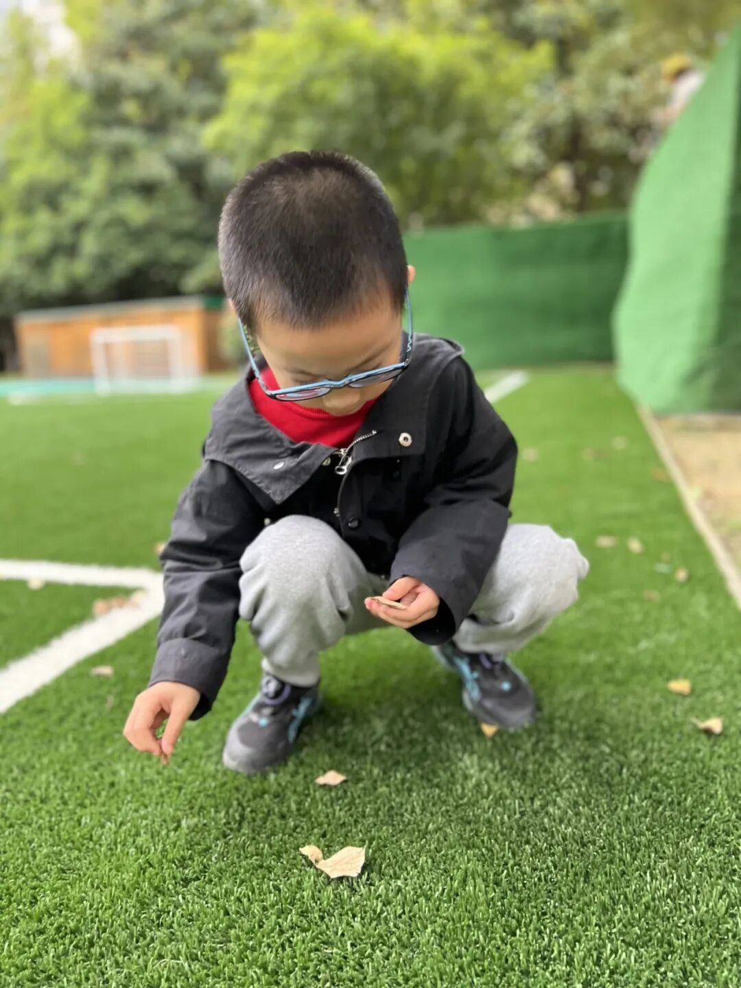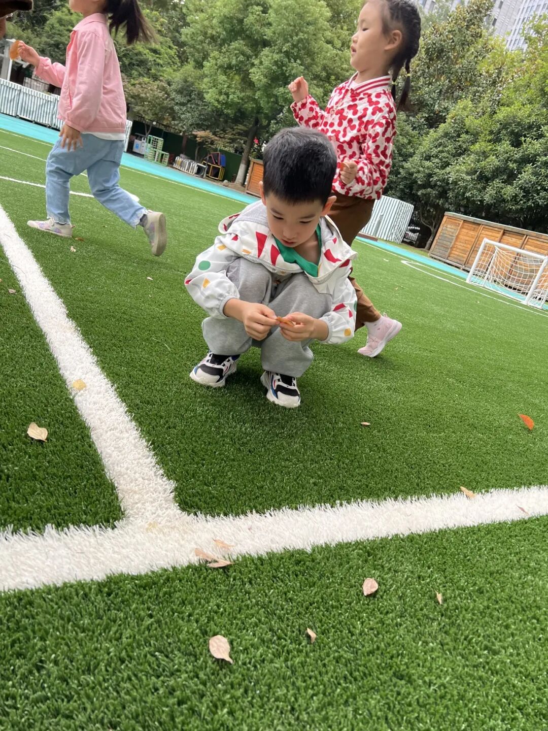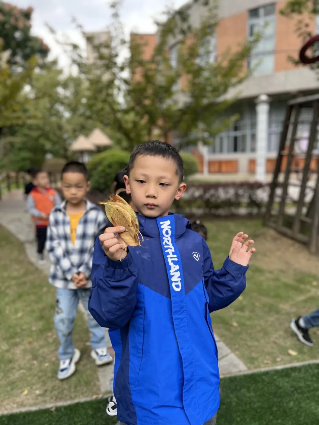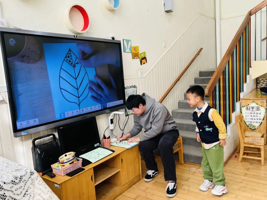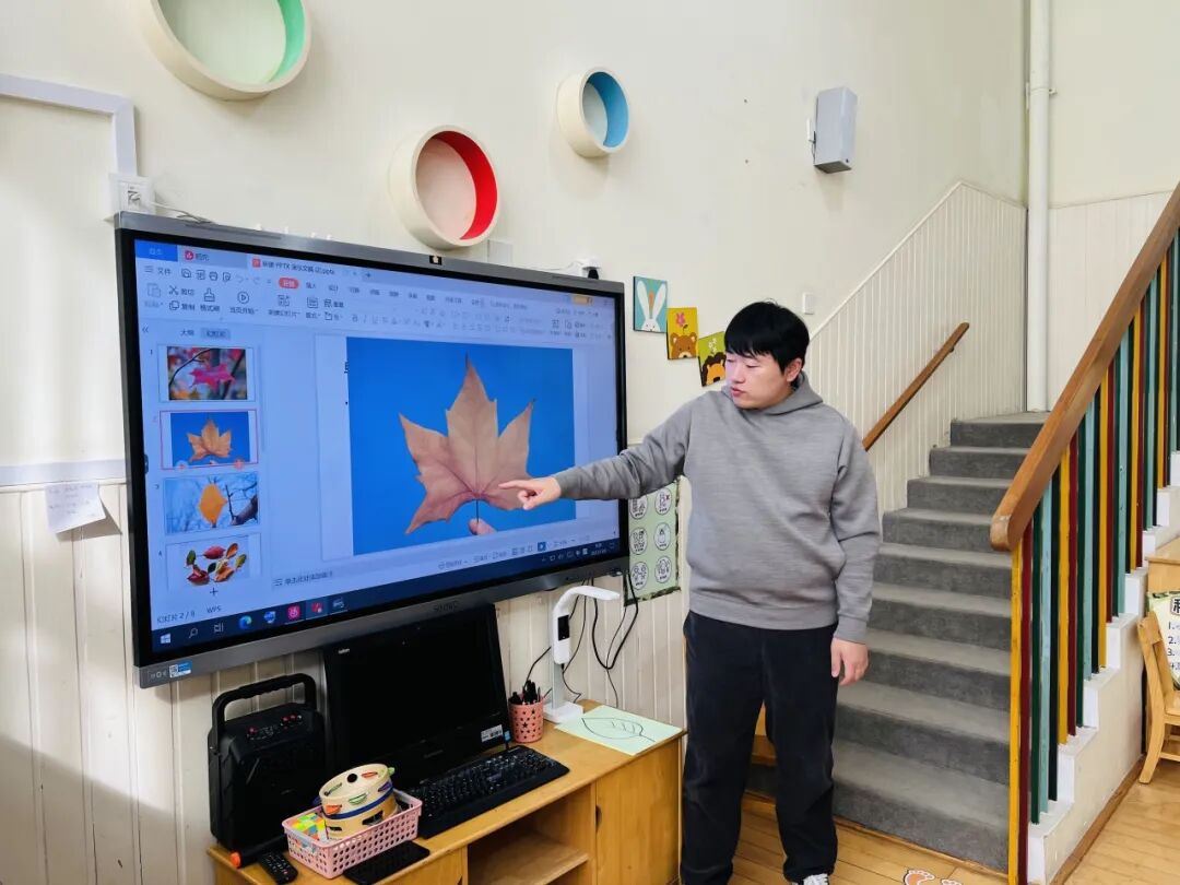 秋风瑟瑟,落叶纷飞,不同的树叶引起幼儿探索的欲望。