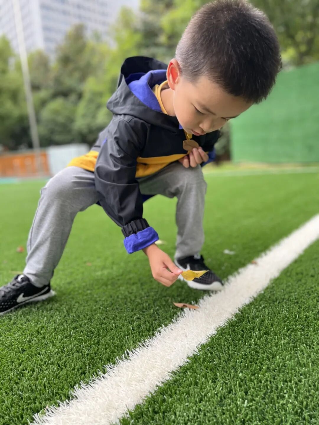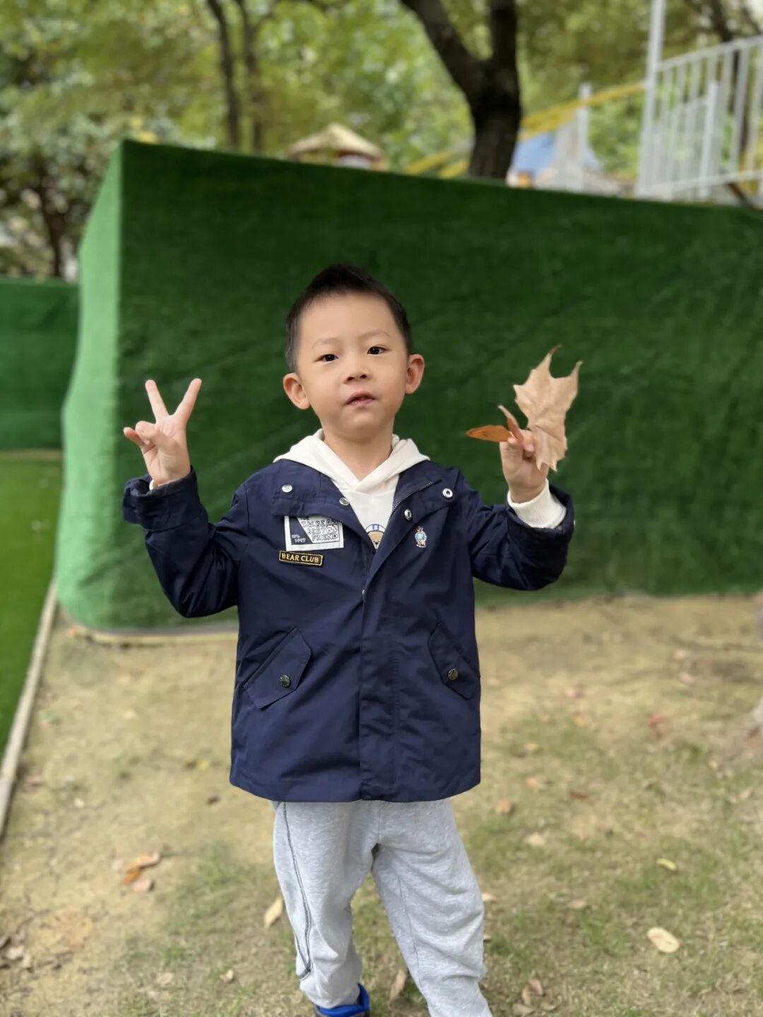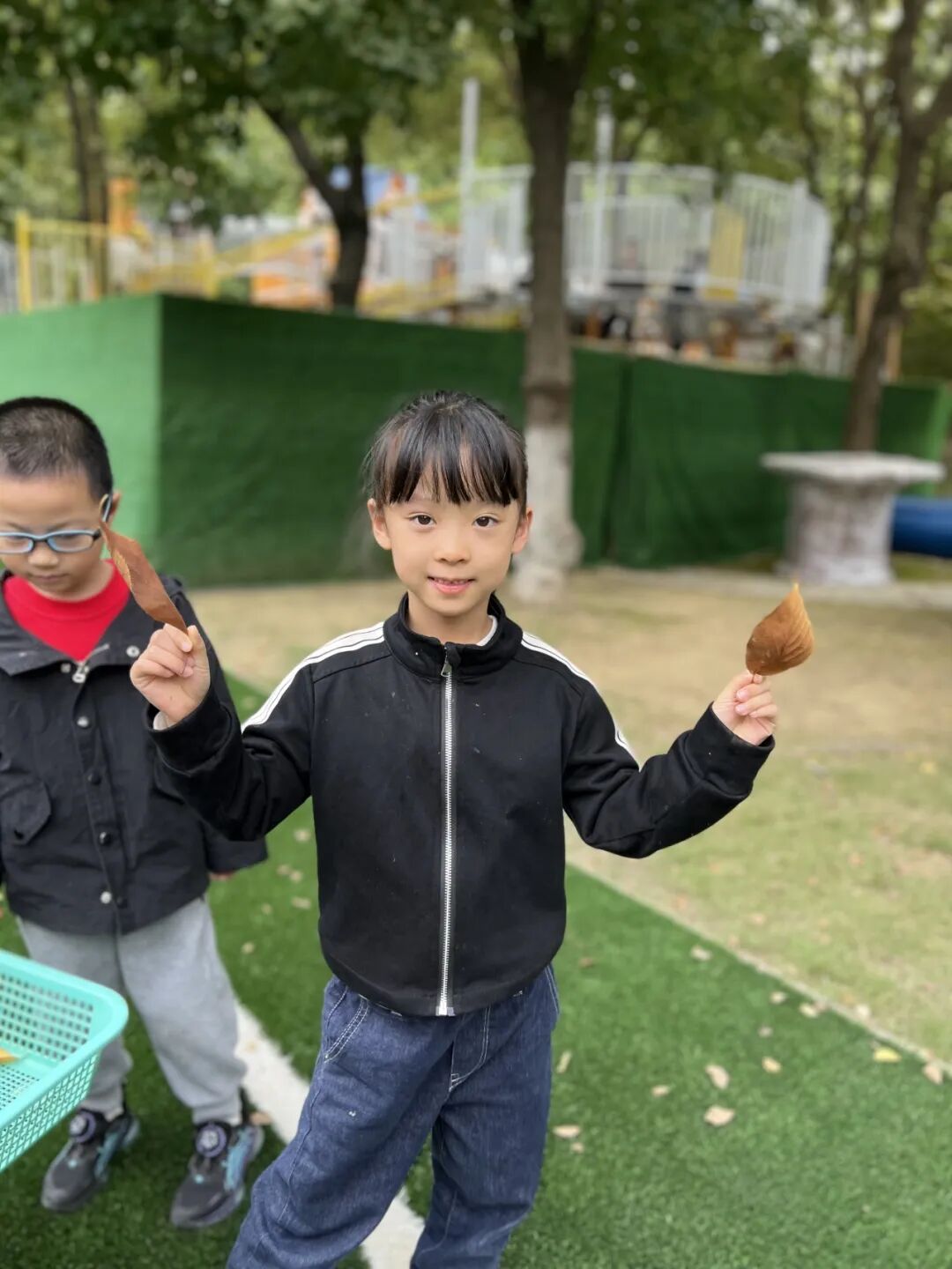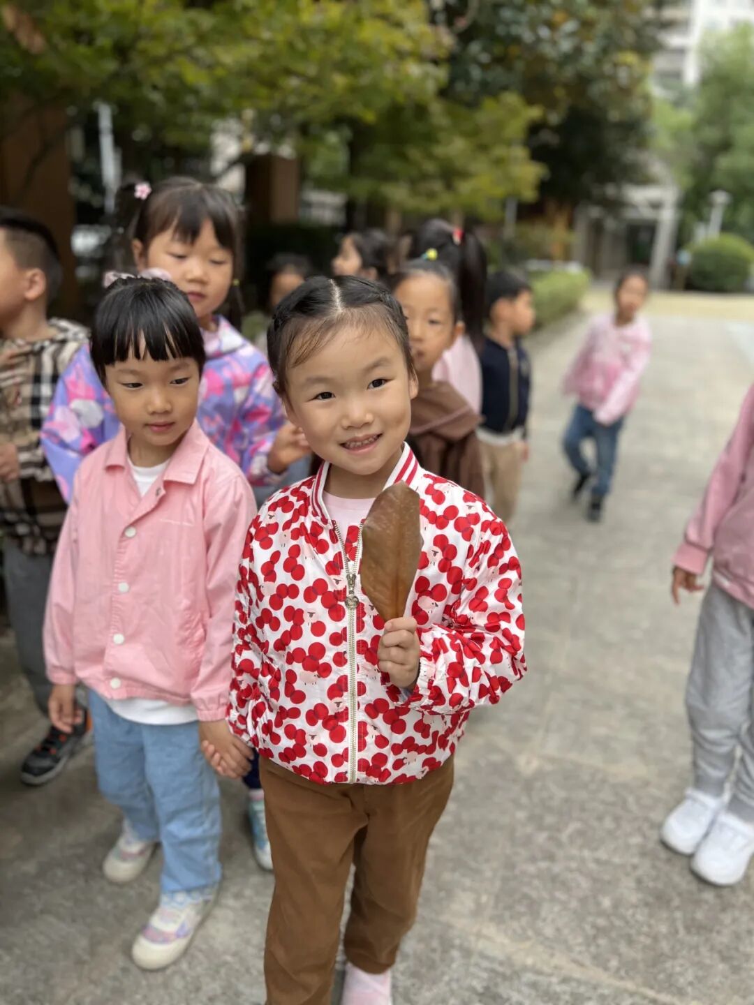 秋风瑟瑟,落叶纷飞,不同的树叶引起幼儿探索的欲望。