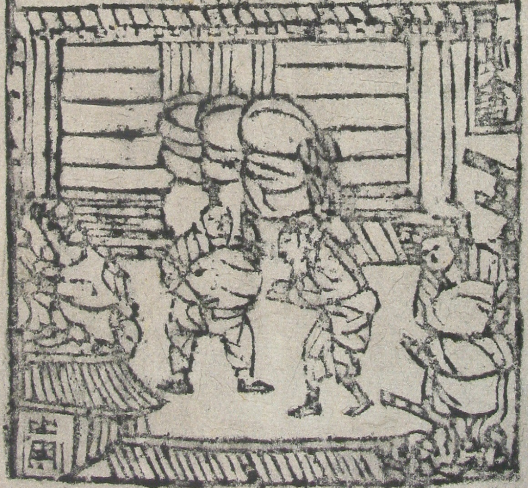 下部刻有宋代风俗画