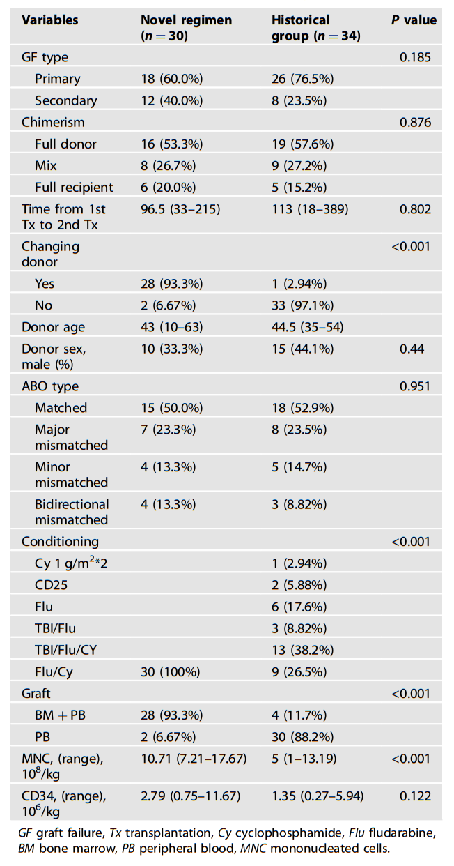植入失败(GF)是异基因造血干细胞移植(allo-HSCT)后的一种罕见但致命的并发症,如果不进行挽救性治疗,病死率接近100%。目前还没有关于这种并发症最佳治疗方法的一般建议。通常建议进行二次移植以挽救患者的生命。然而,二次移植中的预处理方案、供者选择、移植物抗宿主病(GvHD)预防以及其他变量,目前尚无标准方案。二次移植的结局通常较差,1年生存率约为11%-66%。GF包括移植排斥(GR)和植入功能不良(PGF),最常见于单倍体造血干细胞移植(haplo-HSCT)后,根据移植方式的不同,其发生率约为1%-10%。haplo-HSCT后挽救性移植治疗GF的报道较少,更多的是回顾性总结,而不是对具体的二次移植方法的探索。 北京大学人民医院黄晓军院士、孙于谦教授团队制定了一种新haplo-SCT方案来处理第一次haplo-HSCT后的GF。2021年报告了在2018-2020年纳入的首批13例患者的研究结果。近期,黄晓军院士、孙于谦教授团队发表了最新数据(包括既往报道的13例患者),这些数据进一步证明了这种新方案的可行性。医脉通整理如下,以飨读者。 该研究是既往临床试验(NCT03717545)的扩展。符合以下标准的患者使用新方案接受了第二次移植:(1)诊断为急性白血病、骨髓增生异常综合征或淋巴瘤;(2)第1次allo-HSCT后发生GF;(3)签署本研究知情同意书。 二次移植方案:预处理方案为从第- 6日至第- 2日给予Flu(30 mg/m2/d,静脉注射);第-5日和第-4日给予Cy(1000 mg/m2/d,静脉注射)。在二次移植前进行检测供者特异性抗体(DSA),优先考虑DSA阴性患者。在既往研究报告中,GvHD的预防包括巴利昔单抗20 mg(在-1和+4天)、环孢素A(150-250 ng/ml)和霉酚酸酯。由于急性GvHD(aGvHD)发生率高,因此在第+15日追加了1剂巴利昔单抗(共3剂),以加强对GvHD的预防。 二次移植的主要终点为二次移植后28天内的中性粒细胞植入时间。次要研究终点为血小板植入时间、植入功能良好(GGF)率、急性GvHD、慢性GvHD(cGvHD)、巨细胞病毒(CMV)再激活、EB病毒(EBV)再激活、复发率、治疗相关死亡率(TRM)、总生存期(OS)、无白血病生存期(LFS)。 30例患者接受了挽救性移植。所有患者均接受了清髓性预处理方案,大多数(93.3%)接受了Bu/Cy/ATG(表1)。在第1次移植后,第2次haplo-HSCT的中位时间为96.5(范围:33-215)天。 表1 30例患者中,1例于第二次haplo-HSCT后的19天死亡。29例患者中性粒细胞植入中位时间为11(范围:8-24)天,22例患者血小板植入中位时间为17.5(范围:9-140)天(表2)。第2次haplo-HSCT后30、60、90天分别有16例(55.2%)、20例(69.0%)和21例(72.4%)患者获得GGF。末次随访时,GGF为75.9%。 表2 中位随访时间为295天,20例(66.7%)患者存活。在本次随访前发生的12例死亡中,6例由感染引起,3例由GvHD引起,3例由复发引起(表3)。 表3 1年OS率和LFS率分别为60%和53.3%。累积复发率(CIR)和TRM分别为6.7%和33.3%(图1)。 图1 既往的研究已经报道了使用新方案进行第二次haplo-HSCT挽救性治疗的积极结果。该研究进一步证实了这种新方案在植入效果和生存率方面的优势,表明它可能是恶性血液病患者在首次allo-HSCT后的一种可行的GF挽救治疗方案。然而,目前还没有标准的第二次移植方案。本研究是首次报道了GF移植后统一的挽救方案,特别是在haplo-HSCT中。 尽管该研究的结果令人鼓舞,但研究者仍认为有几个方面需要改进,如需要进行多中心研究来验证这种新方案的有效性。目前,对GF的潜在机制尚未完全了解,进一步研究可能有助于优化移植方案。此外,该方法是否适用于非恶性疾病等还需要进一步探讨。 综上所述,使用低毒性的预处理方案,然后从不同供者进行haplo-HSCT是一个有希望的治疗方案,可以挽救第一次haplo-HSCT后的GF患者。 黄晓军 院士 博士生导师、主任医师、北京大学博雅讲席教授 中国工程院院士 北京大学血液病研究所所长,国家血液系统疾病临床医学研究中心主任 中国医学科学院学术咨询委员会学部委员 法国国家医学科学院外籍院士 国自然基金委创新群体、教育部、科技部创新团队负责人 世界华人医师协会第四届理事会副会长 第四、五届中国医师协会血液科医师分会会长 中国病理生理学会实验血液学分会主任委员 第九届中华医学会血液学分会主任委员 Journal of Translational Internal Medicine执行主编,Brit J Hematol,J Hematol & Oncol,Ann Hematol, Chin Med J等核心期刊副主编,第九届中华血液学杂志总主编 主持“国家重点研发计划”、“863”、国自然“杰青”、国自然重点项目、国自然重大项目等国家级课题;以通讯/第一作者发表SCI含Lancet Oncol等IF>10的118篇,单篇最高IF 54.4,被引10867次;获批专利22项;排名第一获国家科技进步二等奖2项、省部级一等奖4项,获何梁何利科学技术与进步奖,光华工程科技奖,国际血液与骨髓移植研究中心(CIBMTR)杰出服务奖等 孙于谦 教授 主任医师、副教授、博士生导师 北京大学人民医院血液内科 北京大学血液病研究所 国家血液系统疾病临床医学研究中心 第十一届中华医学会血液学分会造血干细胞应用学组委员兼秘书 中国医药教育协会真菌病专业委员会秘书长 北京市医学会血液学分会青年委员会委员 中国老年医学学会血液学分会移植感染专业组委员 中国医药教育协会感染疾病专业委员会青年委员 欧洲骨髓移植协作组(EBMT)高级访问学者 欧洲骨髓移植协作组(EBMT)全球青年大使 参考来源: Ma, R., Zhu, DP., Zhang, XH. et al. Salvage haploidentical transplantation for graft failure after first haploidentical alloge