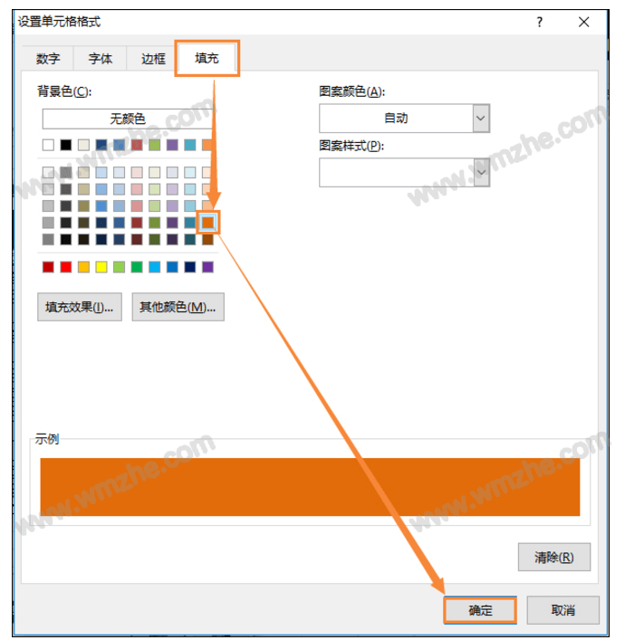 3、在格式窗口中点击“填充选项卡”→“选择一个颜色”→点击确定。