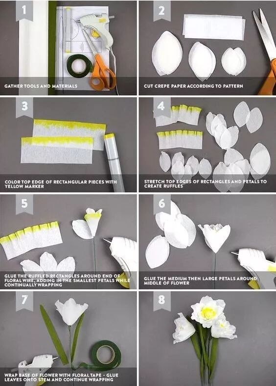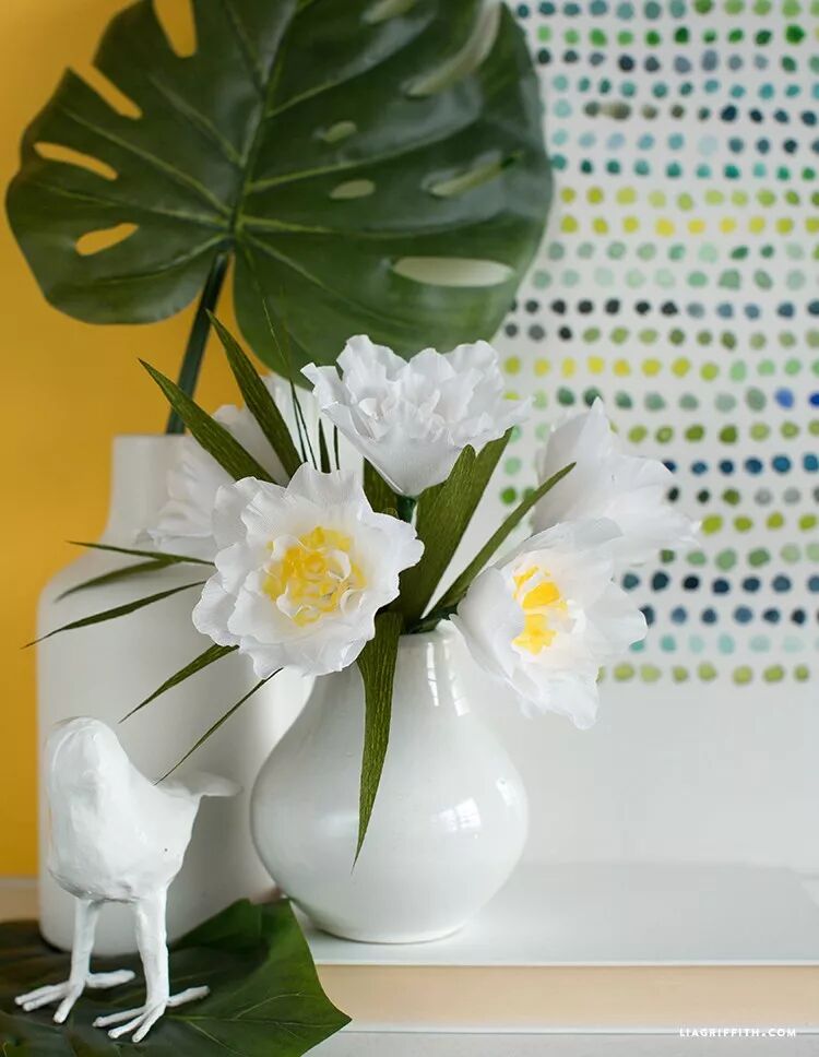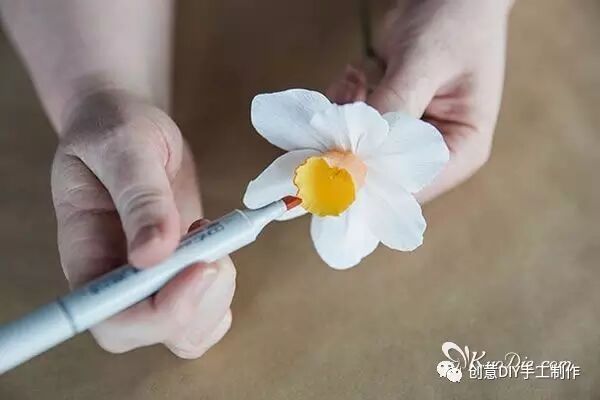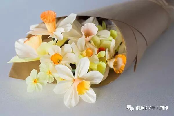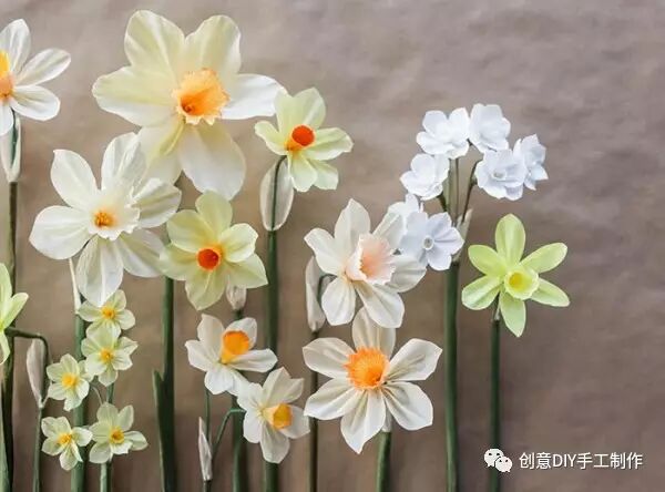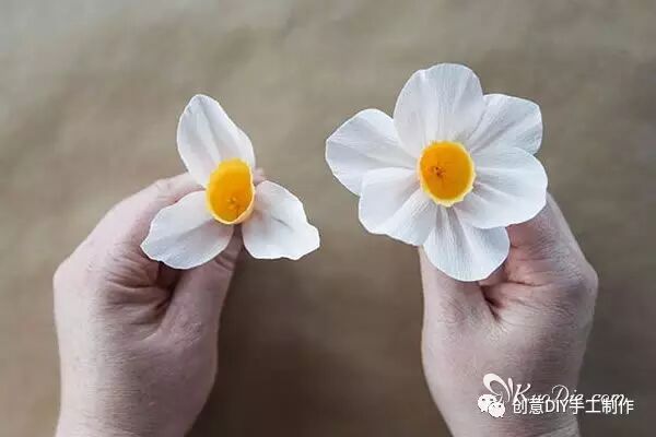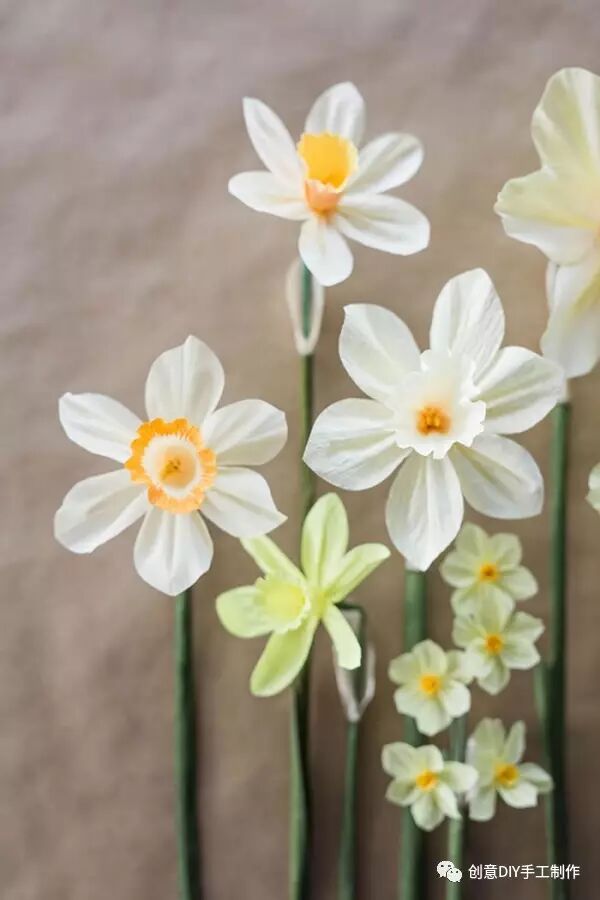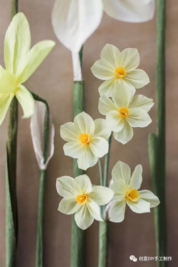 水仙代表团圆、吉祥,使用皱纹纸手工制作些四季常开水仙纸花