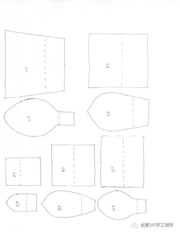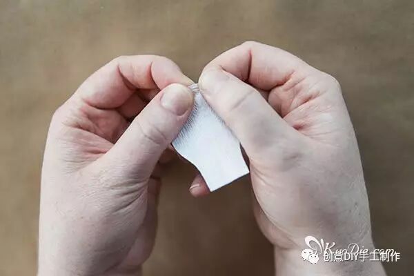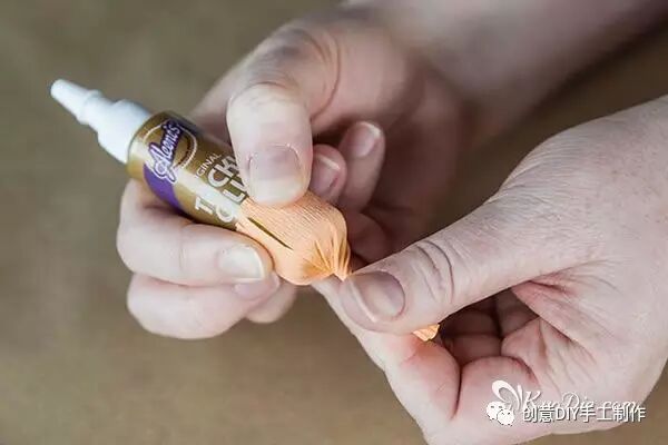 注意:皱纸的纹理应平行于瓶身,并将虚线以下部份(瓶底下方的皱线)集中扭拧在一起