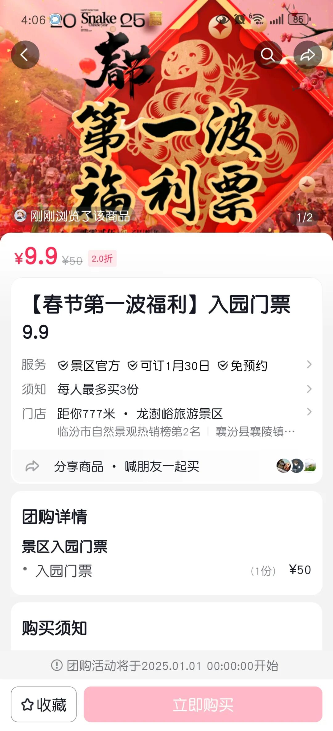 ?第一波(限量5000张):入园门票9.9元(已抢完)