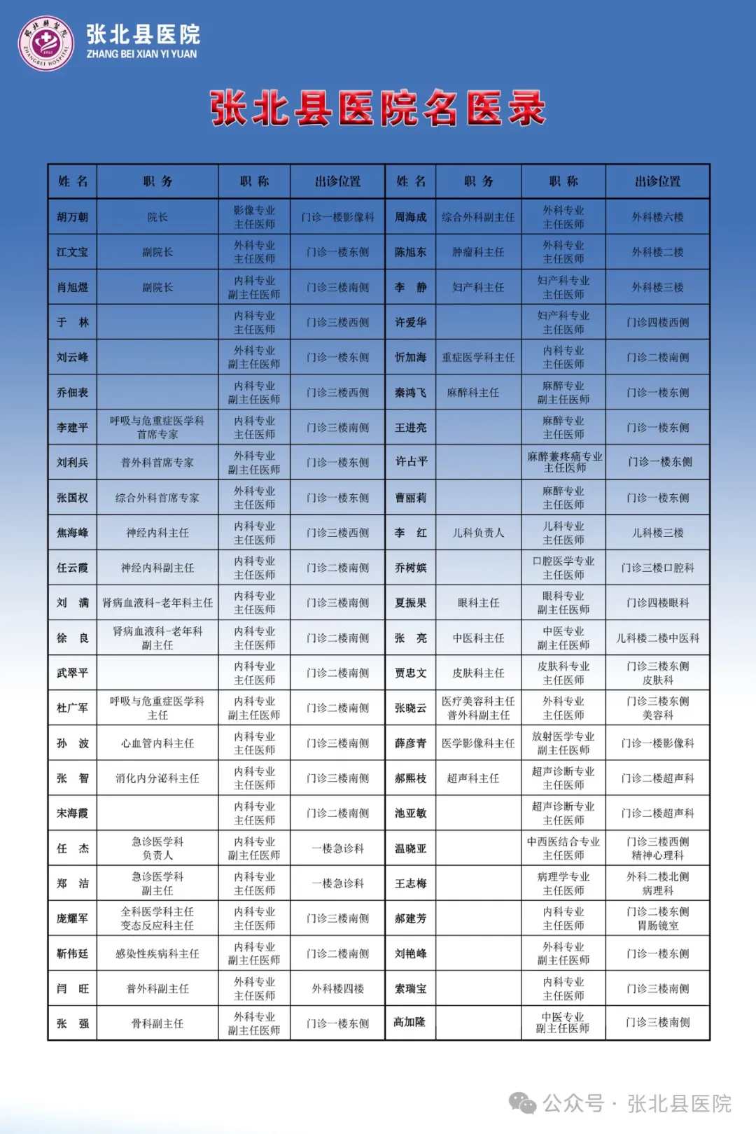 关注 张北县医院 可免费使用WIFI上网