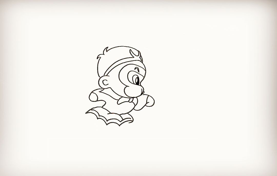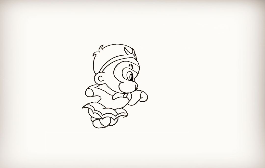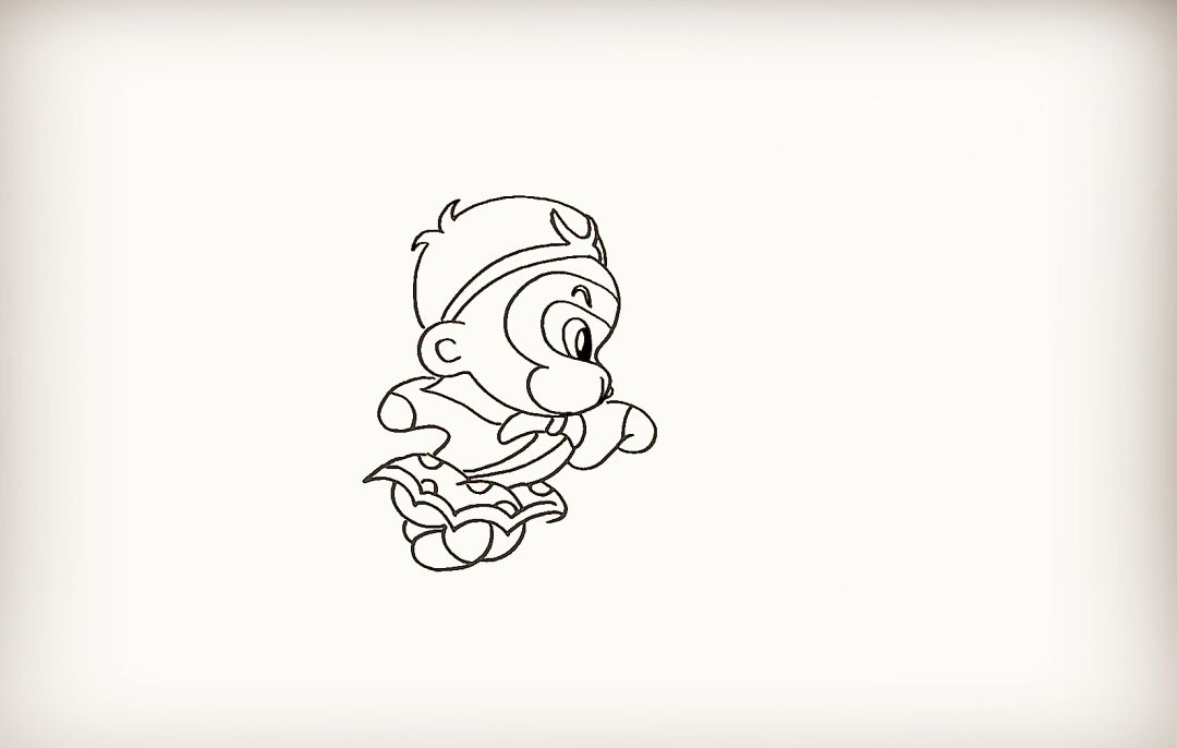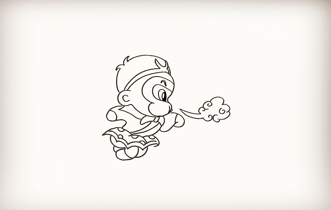 然后在他的嘴边画出一朵筋斗云。