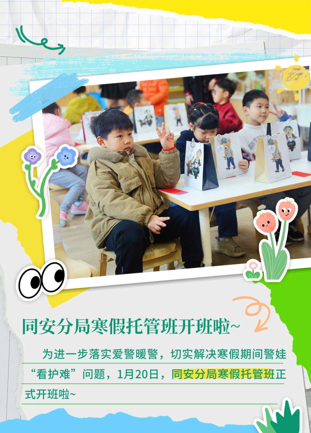 寒假托管 寒假已经开始 孩子们的学习和生活 是广大家长最操心的事情 尤其是警察家庭,面临着“两难之境” 他们常常需要全身心投入到 维护社会治安的工作中 难以在假期陪伴孩子 别急!同安分局寒假托管班来啦 可爱的小神兽们有了好“趣”处 一起去探班吧~ 寒假托管班开班仪式举行 祥平派出所领导、警娃及家属、 幼儿园老师等 共50余人参加开班仪式 在开班仪式上 每个警娃都收到了 为他们精心准备的开班小礼物 希望他们能度过一个充实、愉快的假期 △分局领导与到场的 开班仪式后 带着对美好寒假的期许 分局领导、警爸警妈们、警娃们 在幼儿园老师的带领下 参观学校环境 分局高度重视此次暑托班筹备工作,多次组织实地调研,对比多家教育托管机构,逐一审定寒假托管班课程设置、安全管理、饮食安排等各个环节细节,最后选定天汇幼儿园为托管单位。 在老师的互动和引导下 警娃们逐渐褪下了刚见面时的拘谨 开始和其他小朋友分享玩具 笑容洋溢在他们的脸上 幼儿园进一步优化师资配备,为分局警娃开设专班托管,并根据警娃年龄,科学规划托管课程和相关保障。通过“教育”与“托育”相结合的寒假服务,寓教于乐,让孩子们有所学、有所获、有所得,度过一个安全、快乐、成长的假期,让分局民辅警能够全身心投入到春节安保活动中,没有后顾之忧~ 参加托管班开班仪式的 民警辅警纷纷表示: 开办寒假托管班有效解决了假期带娃难的后顾之忧,从孩子们脸上洋溢的欢乐,深深感受到了组织的关心厚爱以及幼儿园的用心细致,今后将以更加饱满的热情,全身心投入到各项公安工作中,推动同安公安工作高质量发展。 爱警爱在关键处 暖警暖在心窝里 同安公安将继续 秉持“以警为本”的理念 持续深化、细化爱警暖警各项举措 用实实在在的行动 将组织的关爱传递到 每一位民警辅警的心坎上 同警新媒体出品 策划:陈娴、李彦欧 摄影:陈蔚 编辑:林潇 厦门同安警方 警民故事 平安之声![]()