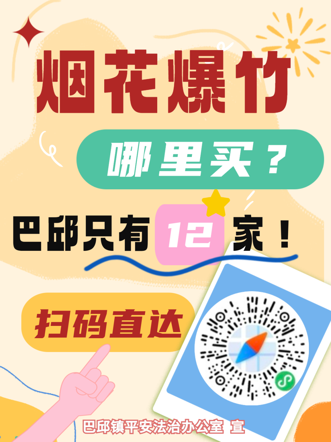 春节的脚步越来越近啦~ 会存在安全隐患噢!) 售卖点位置 雪英烟花爆竹专卖店 吴老板 13979649278 店铺地址:巴邱南路232号 幸福超市 金老板 13755460478 店铺地址:巴邱镇岭上子宁路10号 百利超市 夏老板 13426572606 店铺地址:峡江县巴邱镇人民北路以东观澜苑7A号楼1号店面 文英香烛店 廖老板 13507961984 店铺地址:巴邱南路232号 红太阳冰棒批发部 周老板 13086160333 店铺地址:峡江县巴邱镇原建行店面 陈春香烟花爆竹店 陈老板 15216238570 店铺地址:巴邱镇岭上路 曾欢烟花店 曾老板 13617960205 店铺地址:巴邱镇北门村委肖家村 锦绣烟花 钟老板 15079695071 店铺地址:峡江县巴邱镇天赐良园6栋26号 陈氏香烛爆竹店 陈老板 15949699298 店铺地址:峡江县巴邱四通酒店旁边 黄泥岗百货店 娄老板 18007062220 店铺地址:峡江县巴邱镇岭上路228号 洲上村烟花爆竹销售 娄老板 15279546945 店铺地址:峡江县巴邱镇洲上村委港的村(省道旁) 莉莉烟花爆竹店 宋老板 15179670850 店铺地址:巴邱镇玉峡商城14栋4号 扫描下方小程序码 公安查处烟花爆竹非法行为法规摘编 《治安管理处罚法》 第三十条 违反国家规定,制造、买卖、储存、运输、邮寄、携带、使用、提供、处置爆炸性、毒害性、放射性、腐蚀性物质或者传染病病原体等危险物质的,处十日以上十五日以下拘留;情节较轻的,处五日以上十日以下拘留。 第三十一条 爆炸性、毒害性、放射性、腐蚀性物质或者传染病病原体等危险物质被盗、被抢或者丢失,未按规定报告的,处五日以下拘留;故意隐瞒不报的,处五日以上十日以下拘留。 《烟花爆竹安全管理条例》 第三十六条 对未经许可生产、经营烟花爆竹制品,或者向未取得烟花爆竹安全生产许可的单位或者个人销售黑火药、烟火药、引火线的,由安全生产监督管理部门责令停止非法生产、经营活动,处2万元以上10万元以下的罚款,并没收非法生产、经营的物品及违法所得。 非法生产、经营、运输烟花爆竹,构成违反治安管理行为的,依法给予治安管理处罚;构成犯罪的,依法追究刑事责任。 第三十八条 从事烟花爆竹批发的企业向从事烟花爆竹零售的经营者供应非法生产、经营的烟花爆竹,或者供应按照国家标准规定应由专业燃放人员燃放的烟花爆竹的,由安全生产监督管理部门责令停止违法行为,处2万元以上10万元以下的罚款,并没收非法经营的物品及违法所得;情节严重的,吊销烟花爆竹经营许可证。 从事烟花爆竹零售的经营者销售非法生产、经营的烟花爆竹,或者销售按照国家标准规定应由专业燃放人员燃放的烟花爆竹的,由安全生产监督管理部门责令停止违法行为,处1000元以上5000元以下的罚款,并没收非法经营的物品及违法所得;情节严重的,吊销烟花爆竹经营许可证。 《中华人民共和国刑法》 第一百二十五条 非法制造、买卖、运输、邮寄、储存枪支、弹药、爆炸物的,处三年以上十年以下有期徒刑;情节严重的,处十年以上有期徒刑、无期徒刑或者死刑。 第一百三十六条 违反爆炸性、易燃性、放射性、毒害性、腐蚀性物品的管理规定,在生产、储存、运输、使用中发生重大事故,造成严重后果的,处三年以下有期徒刑或者拘役;后果特别严重的,处三年以上七年以下有期徒刑。 重要提醒 烟花爆竹属于易燃易爆的危险物品, 烟花“伤人”的事故也时有发生, 想要玩得尽兴,玩得安心, 一定要到正规零售点购买烟花爆竹。