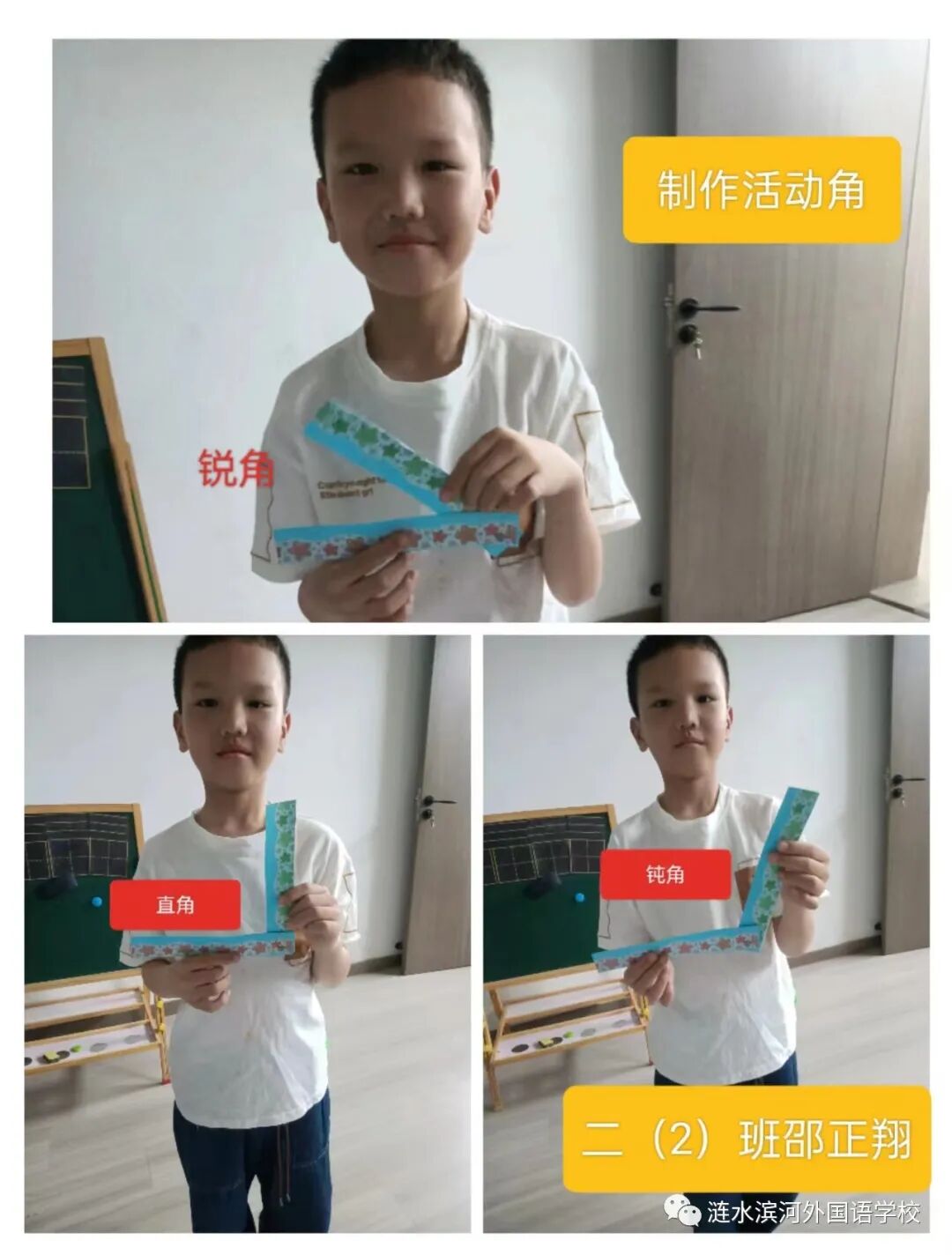 著名的教育家苏霍姆林斯基曾说过:“儿童的智慧在他的手指尖上”。孩子们通过各种动手实践活动,训练了灵活运用所学知识的能力,培养数学兴趣、拓宽思路,数学素养会在活动中得到进一步提升。滨河淮外小学部二年级数学组精心设计了“妙做活动角”为主题的实践活动。孩子们利用周末的时间精心准备并且乐在其中。有的选择卡纸和订书钉作为材料,有的选择木条和大头钉作为材料,还有的选择了吸管作为材料……小朋友们做出的活动角图案多样,既方便又灵巧,让人情不自禁地要为他们的奇思妙想点个赞!下面让我们一起来欣赏孩子们的作品吧! 活动角怎么做