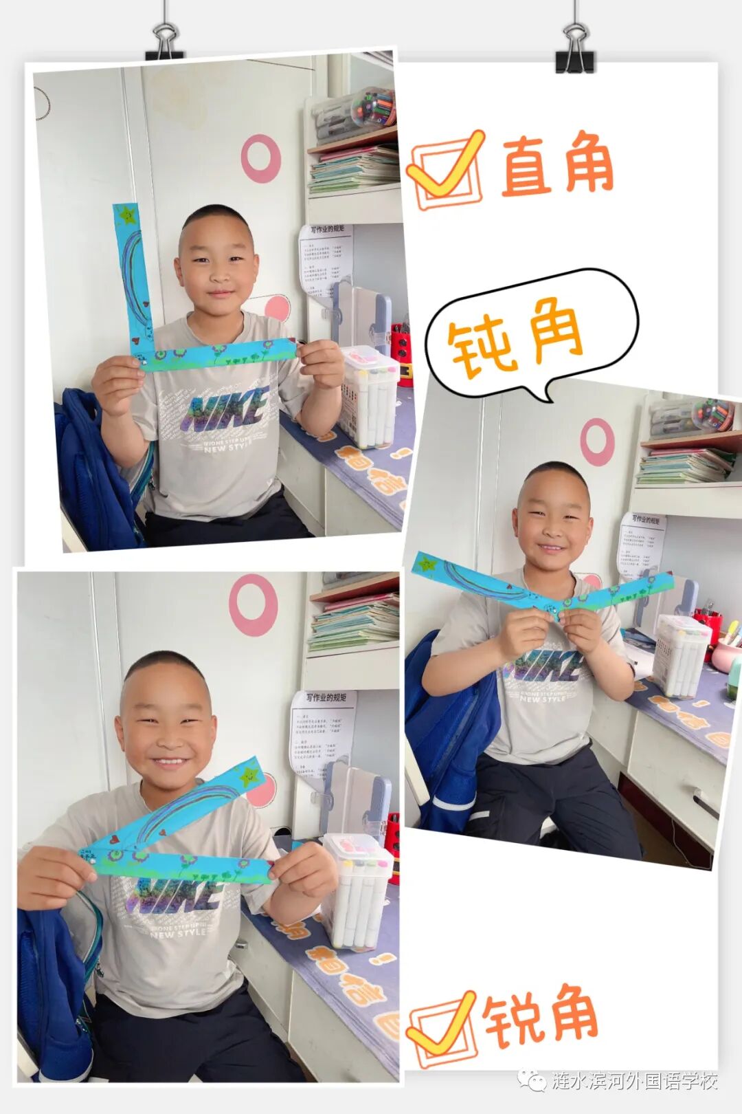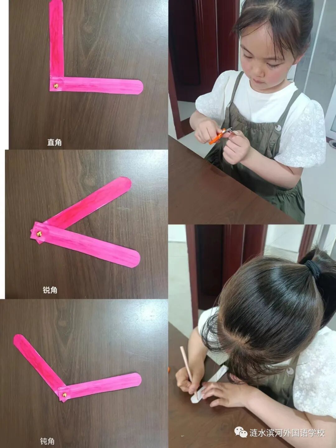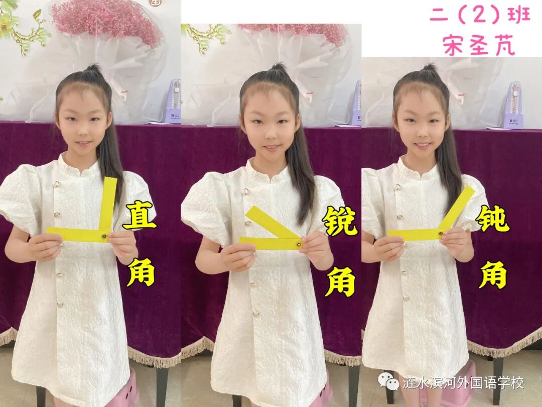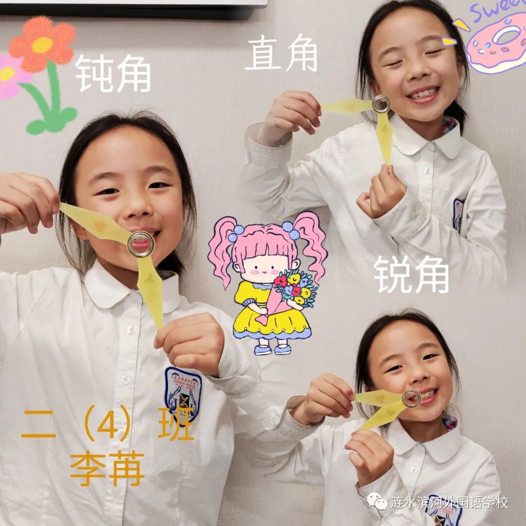 通过做活动角,小朋友们也进一步理解了角的特征及角的大小变化。你瞧,他们正用自己做的活动角在摆出直角、锐角和钝角呢!可真是太棒啦!同学们体会学习数学的乐趣,在乐中学,在学中乐。