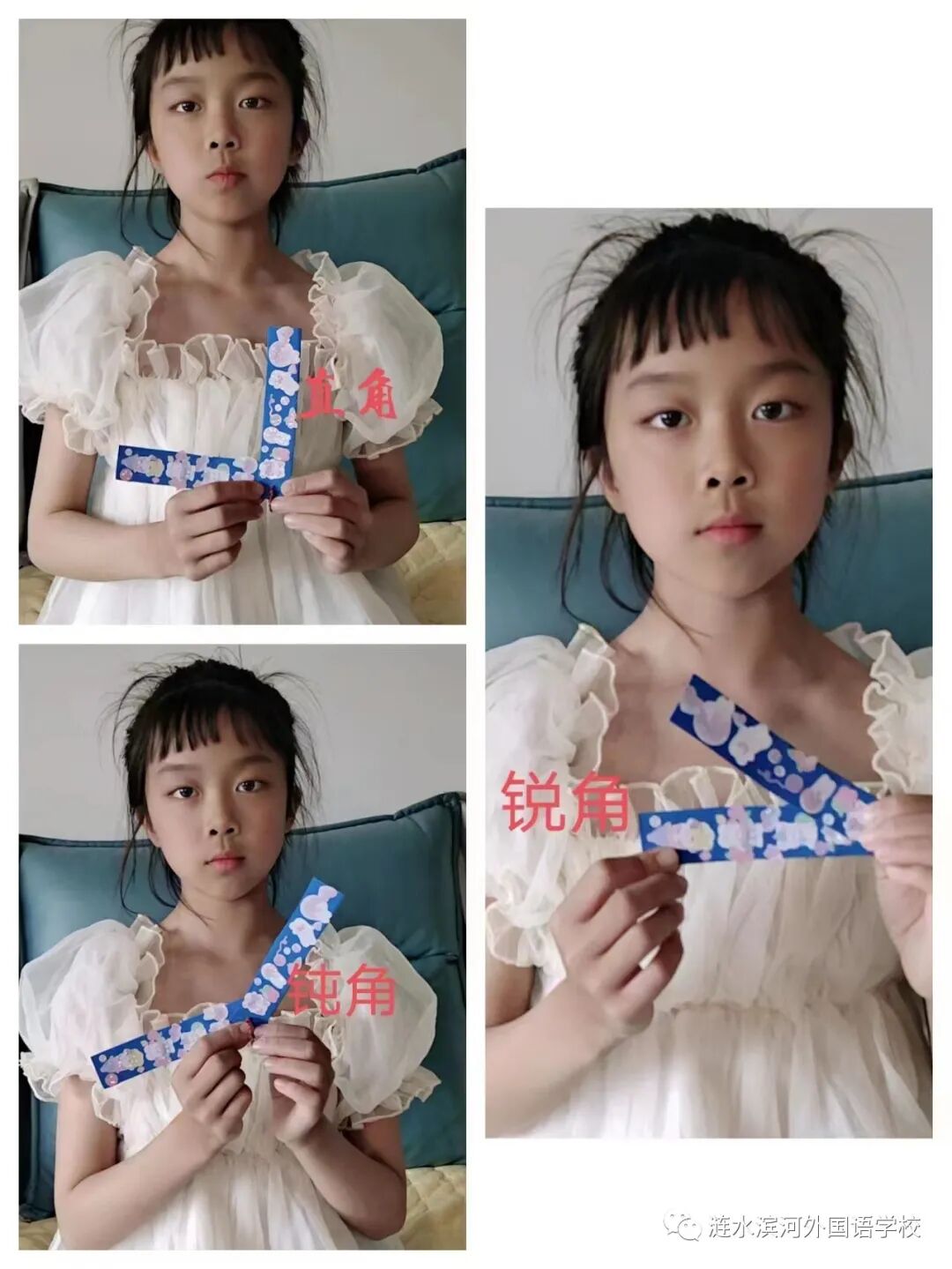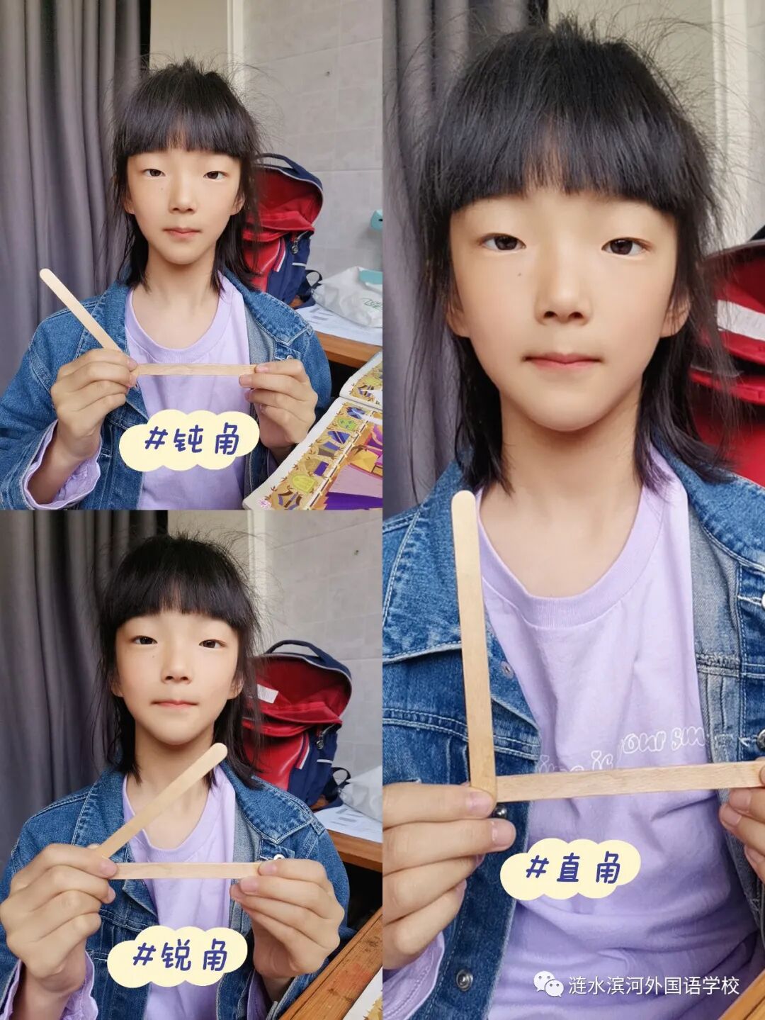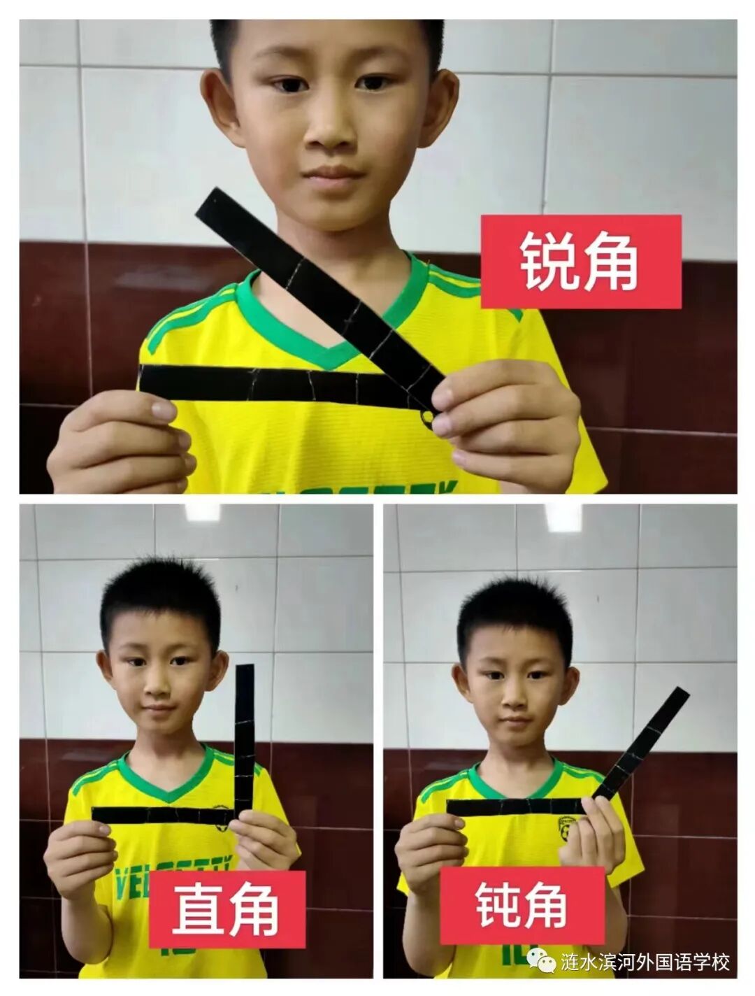 通过做活动角,小朋友们也进一步理解了角的特征及角的大小变化。你瞧,他们正用自己做的活动角在摆出直角、锐角和钝角呢!可真是太棒啦!同学们体会学习数学的乐趣,在乐中学,在学中乐。