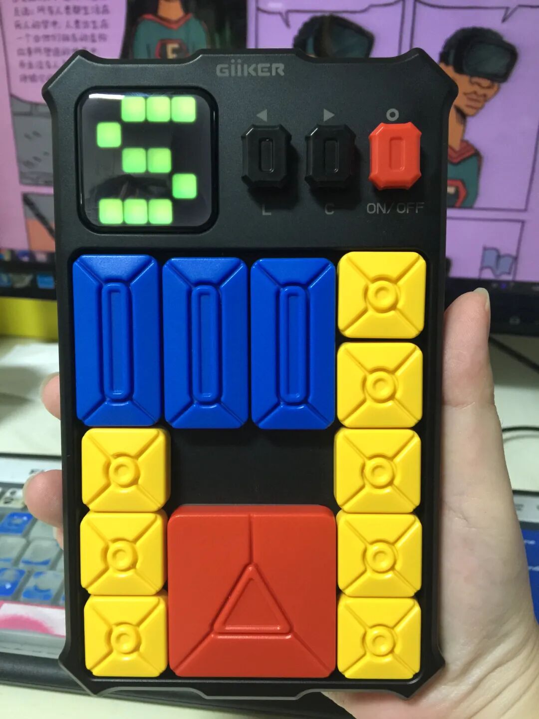 超级华容道的棋子都是磁力吸附在主机上的,牢固不容易丢失。