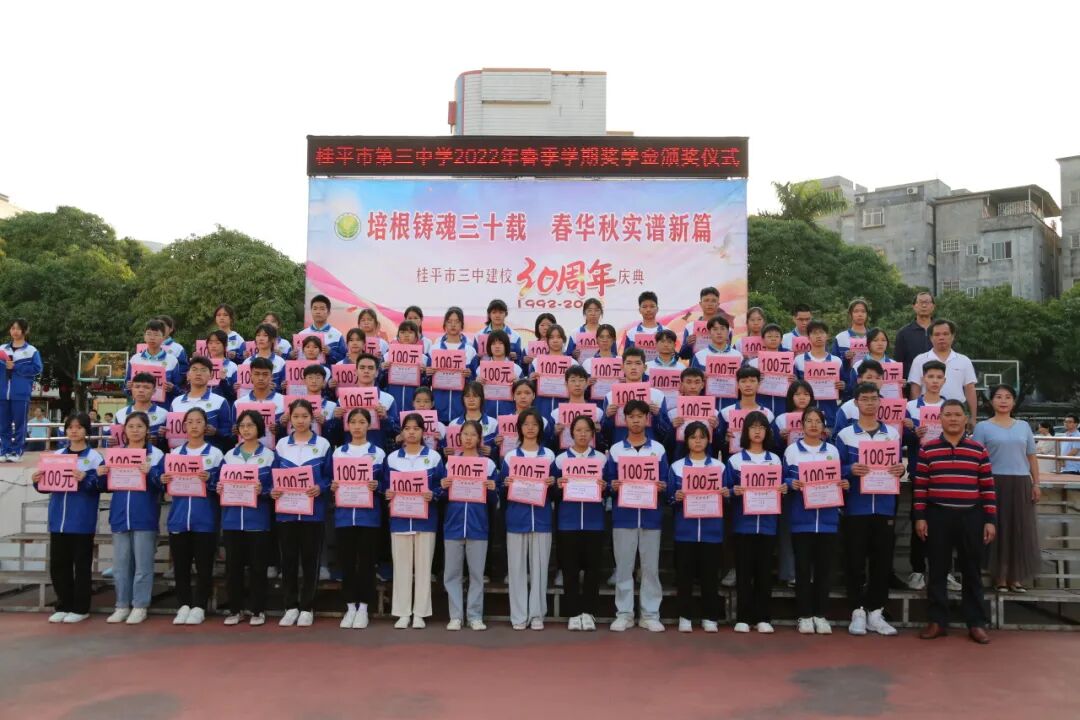 桂平市第三中学2023年宣传片 2023年高一新生计划招生935人(含体育特长生21名,艺术特长生17名,科技特长生2名)。 我校高一新生录取工作按《贵港市2023年中考与高中阶段招生工作方案》要求进行,学生先填报志愿,再由贵港市招生考试院在网上按成绩由高到低录取。 (我校学校代码:0561) 1.学校设置有一、二、三等奖高额奖学金,每学期奖励品学兼优的学生,总人数约180多人。 2.除国家助学金人数约占在校生的38%左右外,还有社会捐资助学等,受益学生人数超40%。 咨询报名电话 办公室 0775-3321170 姚老师 18077722069 杨老师 18077722085 桂平市第三中学创办于1992年,是一所自治区示范性普通高中,贵港市首批实行党组织领导的校长负责制学校。学校地处桂平市中心,交通便利。学校设施完备,宿舍安装有空调、热水系统。 学校以“真心、善心、美心、诚意”为校风,以真善美立心,原植初心,彰显诚意,积极营造浓郁向善的校园文化氛围,建设友爱互助的和谐校园,塑造三中学子正确和积极向上的人生观、价值观和世界观,为学生的真善美品格奠基,努力培养成为诚心诚意做人,全心全意做事的新时代青年。 学校有专任教师217人,其中,正高级教师1人,特级教师1人,广西教育厅教育研究院学科中心组成员1人,贵港市青年科技人才1人,享受贵港市政府特殊津贴5人,高级教师70多人,中级职称以上170多人。以“精心、公心、耐心、爱意”为教风,在课程改革方面,重视培养学生的学科核心素养。教学上严格落实“备、教、批、辅、考”五个教学环节,注重培养学生自主研究性学习,开展学科学习方法指导、学科竞赛等活动。 多年来,我校大力激发学生学习的内驱力,让很多起点低的学生脱颖而出,学校多次荣获贵港市高中教育教学质量管理特等奖、一、二等奖,桂平市高中教育教学质量特等奖和一等奖。近5年来不断有学生考取南京大学、武汉大学、中山大学、中国美术学院、北京体育大学等全国重点大学。 我校坚持“用全面、民主的现代教育成就师生出彩人生”的办学理念,以“专心、虚心、信心、敬意”为学风,注重全面素质教育,以科技节、艺术节、校运会、社团活动、名师讲座、校外研学等等活动为载体,丰富师生的校园生活,展现师生的个性和特长,激发教师教育热情,培养学生综合素养,成就师生出彩人生!2022年《中国好声音》冠军梁玉莹就是我校2015届的毕业生。 参加广西青少年科技运 动会荣获第一名 2022年中国好声音总冠军 梁玉莹 绘画长卷《彩运荷城?气韵浔州》获贵港市绘画创意之星奖 桂平市中学生合唱比赛一等奖 浩浩荡荡“千人远足”队伍 歌舞表演《歌酒唱出幸福来》 贵港市中小学艺术展演 一等奖 阳光拓展活动 校外研学实践活动 足球比赛 端午节包粽子活动 国旗班执行升旗任务 园艺社种花美化校园 随处可见的校园书吧 2016年获贵港市实验室建设工作先进单位、桂平市先进基层党组织等荣誉和称号。 2017年获自治区文明校园、桂平市青少年普法教育工作先进单位等荣誉和称号。 2018年获广西壮族自治区卫生优秀学校、贵港市“伊利杯”篮球联赛体育道德风尚奖等荣誉和称号。 2019年获桂平市中小学心理健康教育特色学校称号。 2020年获贵港市五四红旗团委、桂平市“五好”基层关工委等荣誉和称号。 2021年获全国足球特色学校、全国国防教育特色学校、广西壮族自治区卫生先进单位、桂平市脱贫攻坚工作集体嘉奖等荣誉和称号。 2022年广西深化新时代教育评价改革第一批试点项目单位、贵港市第一批新时代中小学常规管理特色学校、贵港市“金色先锋”党建标兵学校称号,桂平市第二届青少年校园足球特色学校足球联赛高中男子组第一名。 扫一扫学校微信公众号了解学校最新信息及 招生录取情况 微信号|桂平市第三中学