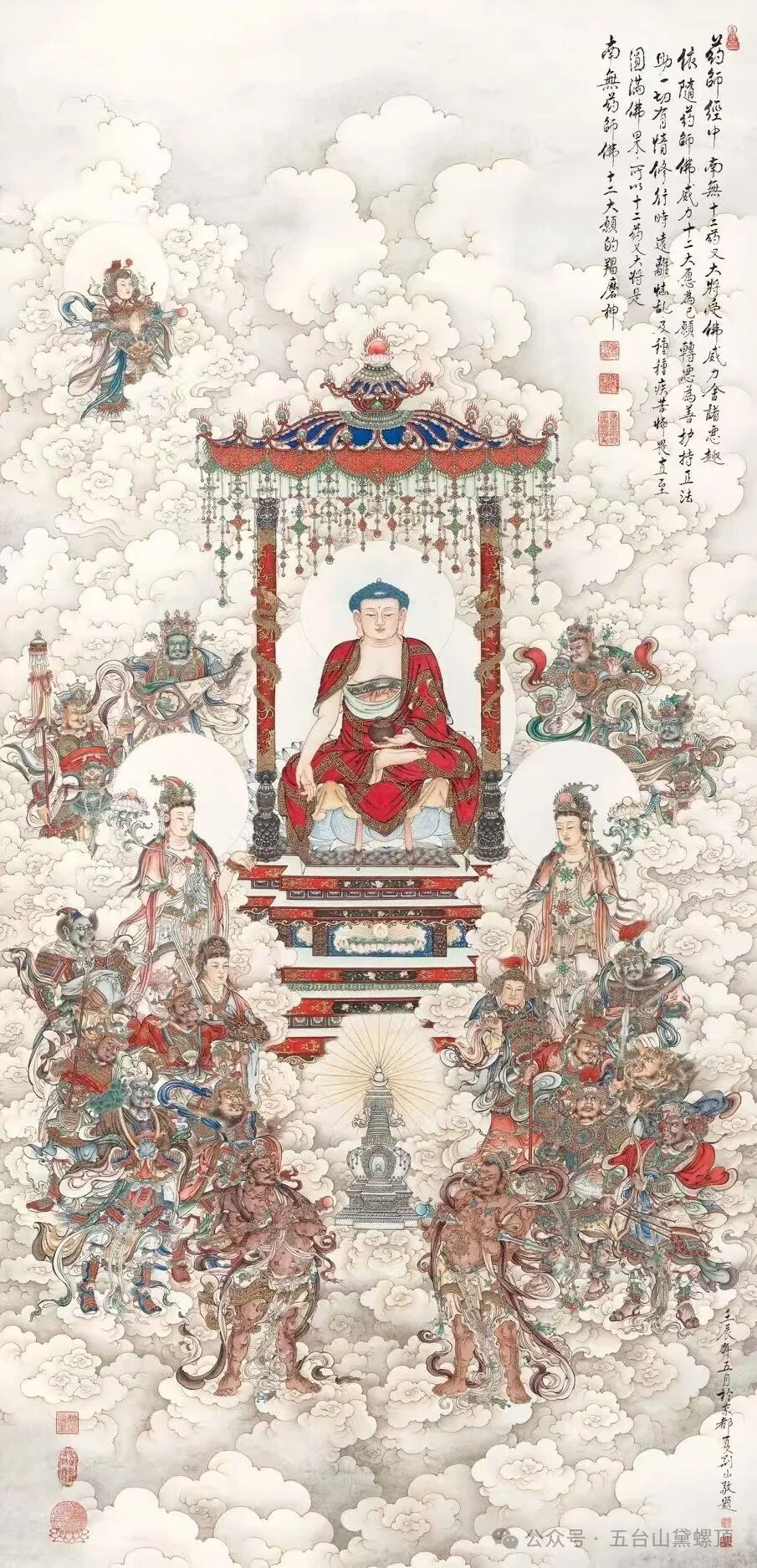 药师佛圣诞 药师如来琉璃光,誓愿宏深世莫量 显令生善集福庆,密使灭恶消祸殃 拔苦必期二死尽,与乐直教万德彰 法界圣凡同归命,蒙恩速得证真常 甲辰年农历九月廿九(2024年10月31日),恭迎药师如来圣诞日药师如来,又作药师佛、药师琉璃光如来、药师琉璃光王佛、大医王佛、医王善逝、十二愿王等,乃东方净琉璃世界之教主,之所以取琉璃为名,是用琉璃之光明透彻来譬喻国土清净无染。药师如来的形象通常为一面二臂,身着三衣,右手施愿印持药诃子,左手托药钵,钵内贮满能治众生因果上一切诸病之妙甘露,具三十二相,八十随好,以金刚跏趺姿安住于莲花月轮宝座上。 药师如来与释迦牟尼佛、阿弥陀佛合称为“横三世佛”。他与西方阿弥陀佛同被视为解决众生生死问题之两大并行法门。药师如来法门除同样鼓励命终往生净土外,也十分着重蒙药师如来愿力加被以求现生即得利益安乐,增福延寿,消灾免难,以免修行多所障碍。 药师佛圣诞南无药师琉璃光如来! 南无药师琉璃光如来! 南无药师琉璃光如来! 名号功德|行愿无边 《药师琉璃光如来本愿功德经》中说:“东方过娑婆世界十恒河沙佛土之外,有佛土名为净琉璃,其佛号为药师琉璃光如来。” 药师佛,又作药师如来、药师琉璃光如来、药师琉璃光王佛、大医王佛、医王善逝、十二愿王,为东方净琉璃世界之教主。 以琉璃光为名,乃取譬于琉璃之光明透彻,以喻国土清静无染污。如来说法度世,能除众生生死之病,故名药师。 根据佛经记载,众生之中有愿生西方极乐世界无量寿佛所听闻正法而未定者,若闻药师琉璃光如来名号,临命终时有八大菩萨示其道路,护持往生极乐。 而药师佛法门除同样鼓励命终往生净土外,更着重于得蒙药师佛愿力加被,以求现生即得利益安乐,增福延寿,消灾免难,可免修行多所障碍。 据《药师琉璃光如来本愿功德经》载,日光遍照菩萨与月光遍照菩萨为药师佛的二大胁士。药师佛与日光、月光二位菩萨并称“东方三圣”。二位菩萨同为无量无数菩萨众之上首,将于药师佛涅槃后,依次递补佛位,悉能持药师如来之正法宝藏。 皈命满月界,净妙琉璃尊 法药救人天,因中十二愿 慈悲弘誓广,愿度众含生 我今申赞扬,志心头面礼 雲封青螺![]()