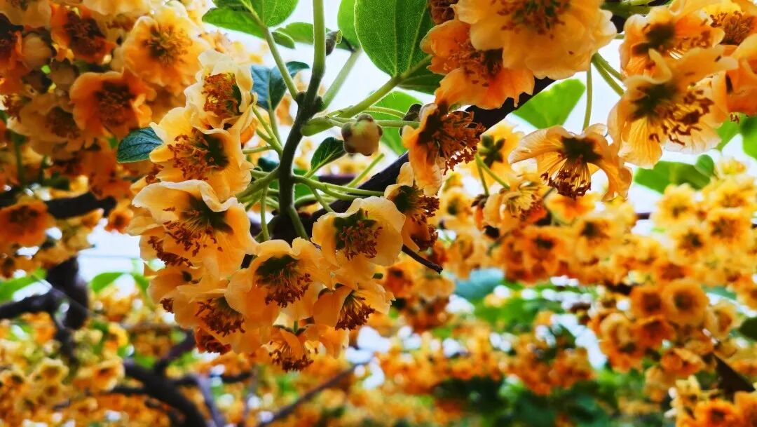 奇异花开 奇异果又称猕猴桃 它美味多汁 营养丰富 素有“水果之王”的美称 但吃过奇异果的你 见过“奇异花”吗? 五月正是奇异果花朵绽放的时节 走进白沙河街道高家营村奇异果采摘园 空气中都弥漫着甜甜的香气 快跟着小白一起 来欣赏奇异之花吧 ENJOY YOUR LIFE 冬寒春暖 酝酿了一个冬天的奇异果树 伸展开如苍龙蜿蜒般的蔓枝 一片片如鳞的绿叶下 金黄色的花朵簇拥其间 散发出阵阵馥郁芬芳 ENJOY YOUR LIFE 奇异之花 开的茂盛 开的热烈 金灿灿的花瓣满载阳光 清风吹过 花香弥散 甜甜的味道 让人沉醉 ENJOY YOUR LIFE 这奇异果树 ,也分雌雄,雄株开花不结果,雌株开花亦结果。而且花朵刚开的时候,是淡淡的白色,只有在授粉后,才会变的金黄。 ENJOY YOUR LIFE 奇异果雌株 奇异果雄株 怎么样,奇异果的花第一次见吧,是不是觉得“涨芝士”了。不过别心急,想吃奇异果还要再等几个月,晚秋时分,我们再约! 魅力新城区 灵秀白沙河 策划 | 刘少欣 编辑 | 张 宇![]()