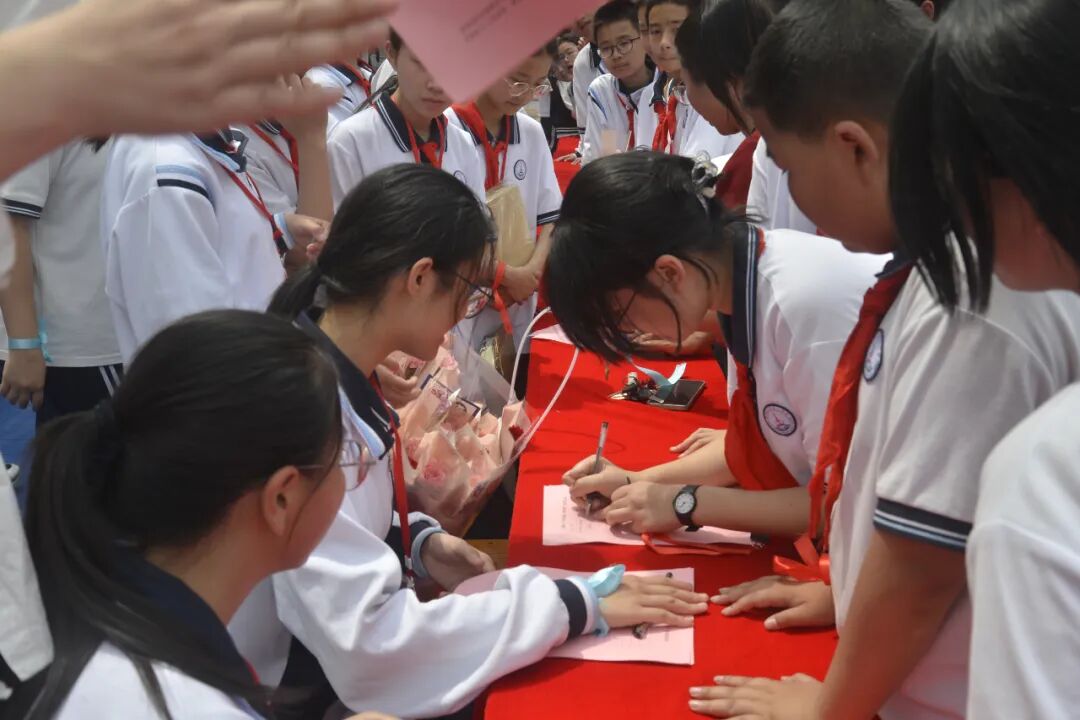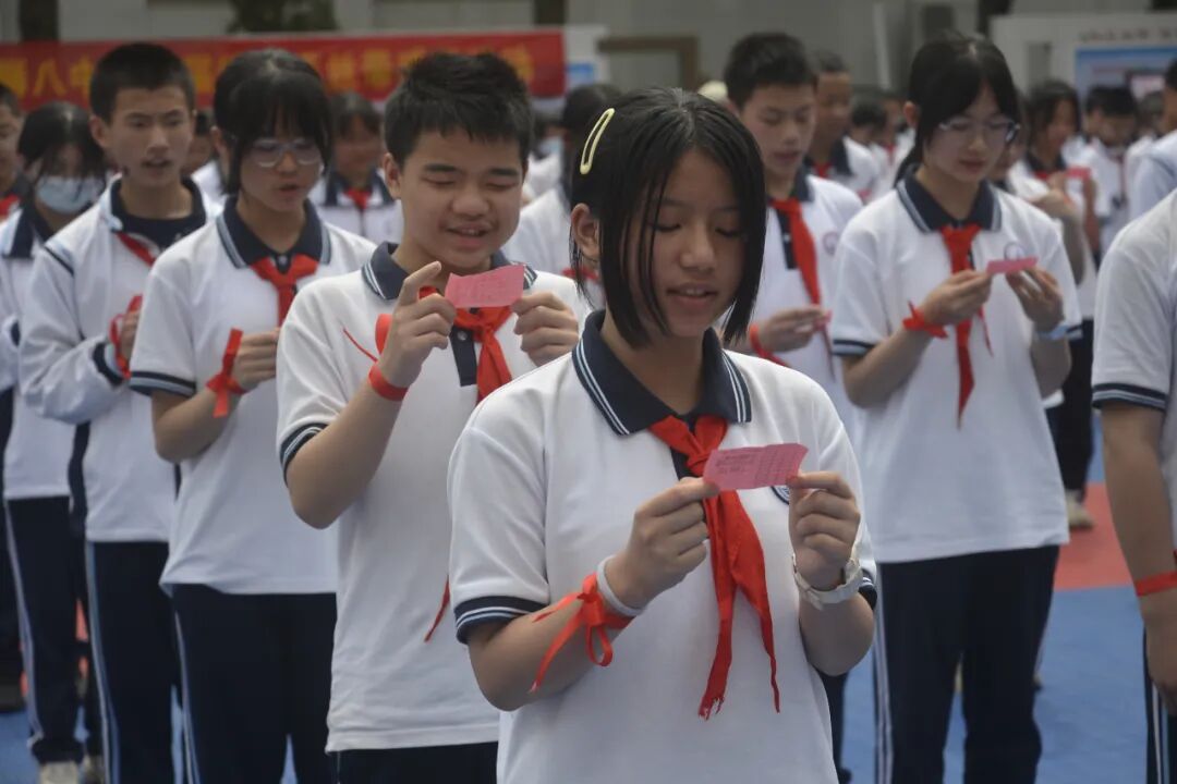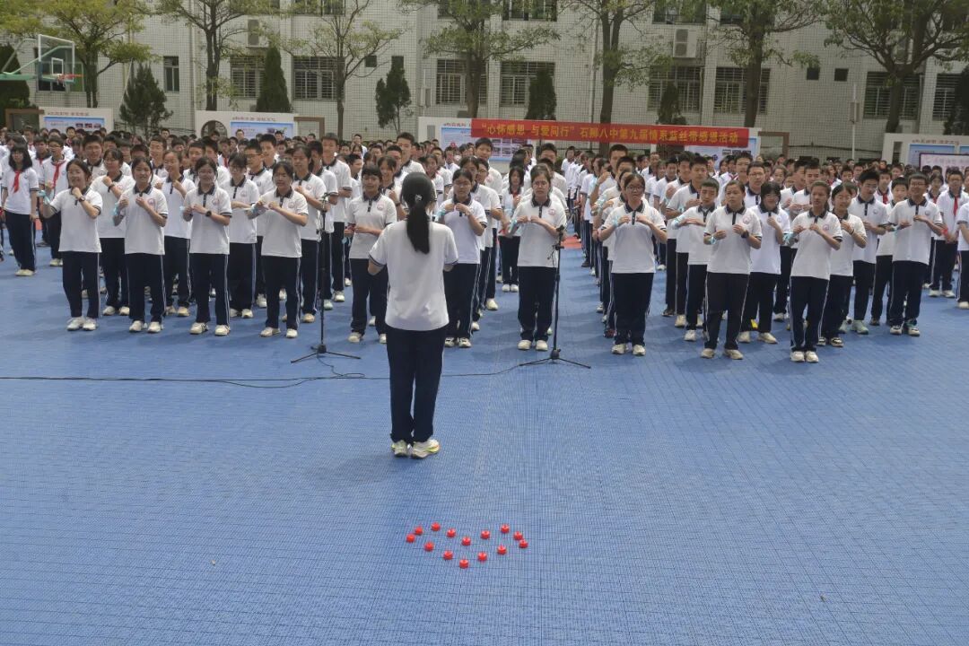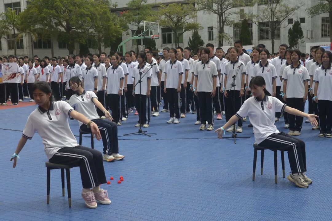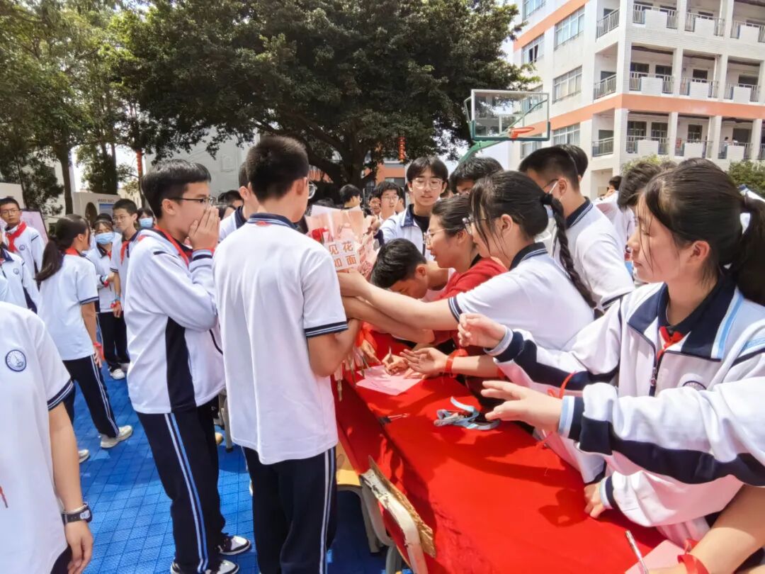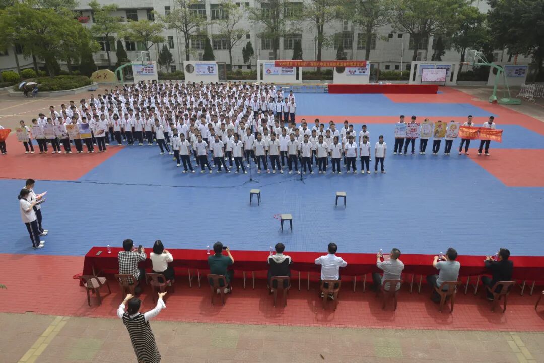 石狮八中中午,我们在初中楼广场组织了系列活动,我校章华宝书记、骆阳副校长、刘小明党委副书记、学生发展中心蔡建立主任、团委蔡文榜等校级领导参加了本次活动的开幕式。