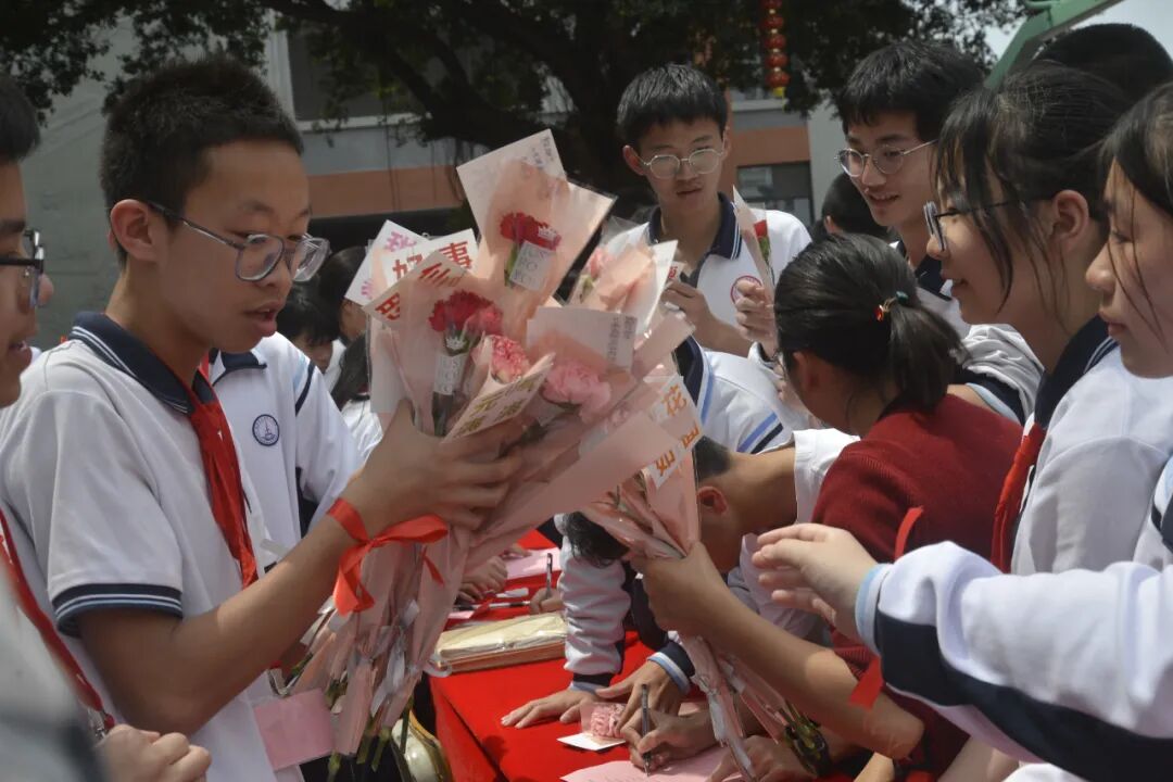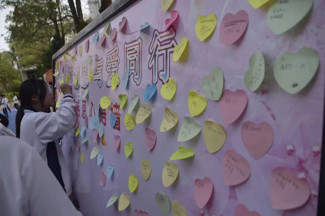 开幕式结束后,同学们积极地参与感恩系列活动。有的同学将蓝丝带送给老师,有的同学领取了鲜花,送给心中想要感谢的老师与父母,有的同学在写感恩信,有的同学将祝福送给想要感恩的老师与同学,整个校园充满温馨与感动。