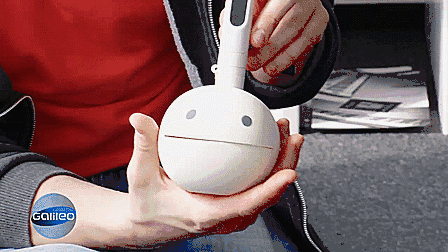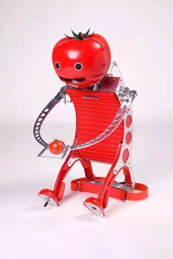 明和电机除了制造电音蝌蚪这个魔性的宝贝以外,更无厘头的是为了跑马拉松而创作的自动喂食番茄机器,只要顶到头顶,小机器人就会挥舞自己的机械手臂来自动为你喂食番茄补充体力。这个创意非常的good,十分感动但是拒绝购买。