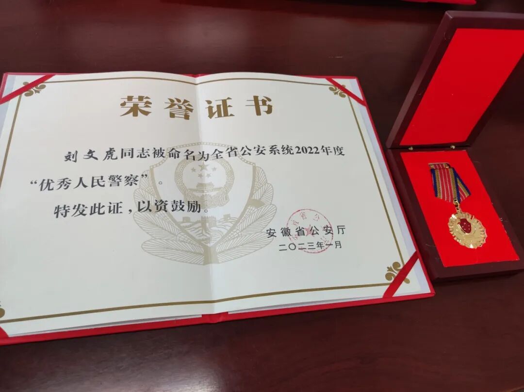 从警6年来,刘文虎凭着过硬的业绩和能力,从一名普通民警成长为一名基层干部,深得领导与同事认可,也深得辖区群众好评。由于工作表现出色,刘文虎先后荣获个人嘉奖五次、三等功一次,被评为“全省优秀人民警察”“安庆市青年岗位能手”。