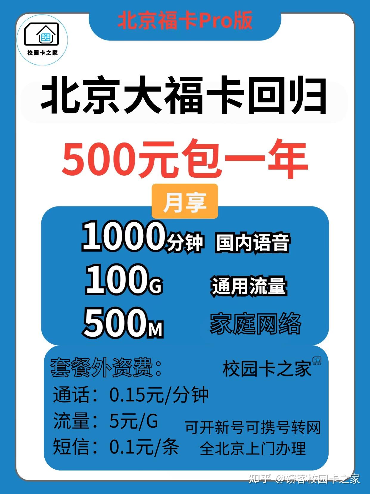 北京移动大福卡Pro版500包一年,每月100G通用流量+1000分钟通话+500M宽带自用体验